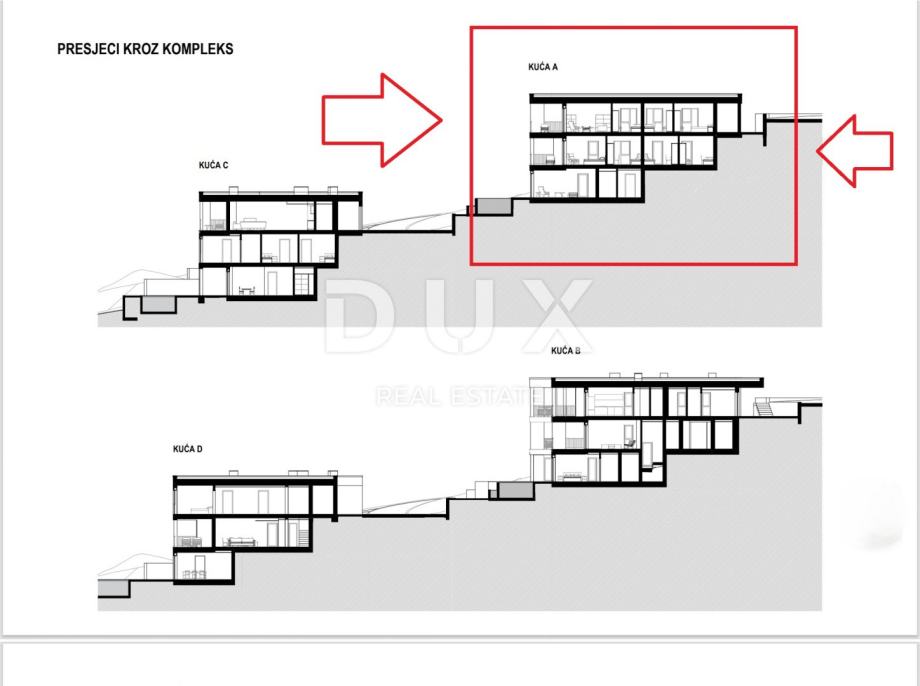 Ponujamo vam nepremičnino, ki vam nudi sodoben dizajn in eleganco, udobje in vrhunsko opremo ter se nahaja na lepi, mirni lokaciji v bližini javnega prevoza, šol, vrtcev, trgovskih centrov in deset minut vožnje od Reke. Kompleks 4 stanovanjskih objektov s skupno 8 apartmaji se nahaja severno od jadranske magistrale na območju "Zelene Kostrene" od koder je lep razgled na celoten Kvarnerski zaliv. V neposredni bližini je 10 kilometrov urejenih pohodniških, kolesarskih in fitnes poti, ki potekajo po najvišjih predelih Kostrene od vrha Solin do vrha Sopalj. Dostop do hiš je urejen z zgornje ceste, kjer je predvidena ureditev in razširitev obstoječe ceste. Vsaki hiši pripadajo štiri zunanja parkirna mesta oziroma dve parkirni mesti na stanovanjsko enoto. Vsaka hiša je sestavljena iz dveh apartmajev. Stanovanja na zgornjih dveh parcelah se nahajajo eno nad drugim, stanovanja na spodnjih dveh parcelah pa eno poleg drugega. Vsakemu apartmaju pripada del vrta. HIŠA A stanovanje S1 - A: BIVALNI PROSTORI: - dnevna soba / jedilnica 27,81 - kuhinja 9,84 - soba 11,99 - soba 11,99 - soba 16,41 - kopalnica 3,71 - hodnik 11,30 - omara 2,63 - wc 2,11 - kopalnica 4,59 - pralnica 2,37 - vhod 5,96 - pokrita terasa 26,42 - pokrit vhod 4,59 BIVALNI PROSTORI SKUPAJ: 141,72 m² PRIDRUŽENI PROSTORI: - shramba 6,48 - zelenica 8,00 - zunanja terasa 12,34 - zelenica 5,16 - parkirni prostor 1 13,89 - parkirni prostor 2 14,07 PRIDRUŽENI PROSTORI SKUPAJ: 59,94 m² STANOVANJE S1- A SKUPNA POVRŠINA (m2): 201,66 m² To luksuzno stanovanje je zasnovano za maksimalno udobje. OPREMA: Hiša v kateri se nahaja stanovanje je kvalitetno grajena in luksuzno opremljena, vsi vgrajeni materiali, talne in stenske obloge so po najvišjih standardih. - fasadna izolacija debeline 10 cm - talno ogrevanje - toplotne črpalke - vrhunsko alu stavbno pohištvo. Stanovanje ima lasten vrt in 2 parkirni mesti. CENA: Navedena cena se nanaša na popolnoma dokončan objekt na ključ, brez pohištva. Cena vključuje DDV, kupec je oproščen plačila davka na nepremičnine. V primeru nakupa pri podjetju, registriranem na Hrvaškem, je po prodaji možno celotno vračilo DDV. Čista in urejena lastnina. Vsekakor lepa nepremičnina za razkošno družinsko življenje, primerna pa tudi kot naložba v obliki elitnega turizma. EDINSTVENA NEPREMIČNINA ZAGOTOVO VREDNA VAŠE POZORNOSTI NA ODLIČNI LOKACIJI!!! KOSTRENA Kostrena je staro priljubljeno obmorsko mesto, prvič omenjeno v začetku 15. stoletja. Prvo občinsko samostojnost je dobila leta 1874, a jo je obdržala zelo kratek čas, le dve leti. Razdeljena je na dva dela, sv. Lucije in sv. Barbare, po imenih dveh cerkva, ki obstajata na njenem območju. Kostrena se nahaja v neposredni bližini mesta Reka, obkrožena z zalivom Martinšćica in Bakarskim zalivom. Polotok Kostrena je dolg približno 10 kilometrov in se blago spušča proti obali. Po vsej dolžini se nahajajo čudovite plaže, ki jih poleti obišče na tisoče kopalcev. Najbolj znane in obiskane so tiste v zalivu Žurkovo, sledijo pa jim Smokvinovo, Svežanj, Spužvina, Podražica, Nova voda in Perilo. Kostrena je sestavljena iz približno dvajsetih naselij, številna so dobila imena po družinah, danes pa so najbolj naseljena Vrh Martinšćice, Glavani, Sv. Lucija, Rožmanići, Doričići in Paveki. Značilno kraško območje s sredozemskim rastlinjem in znamenito kostrensko gromačo ter milo podnebje, ki se včasih prepusti močnim sunkom burje, so značilnosti te pokrajine.