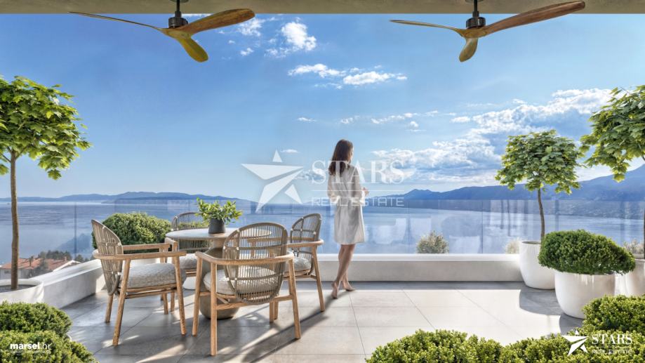 Balkon ponuja panoramski razgled na morje in kvarnerske otoke, kar dodatno povečuje vrednost te nepremičnine.