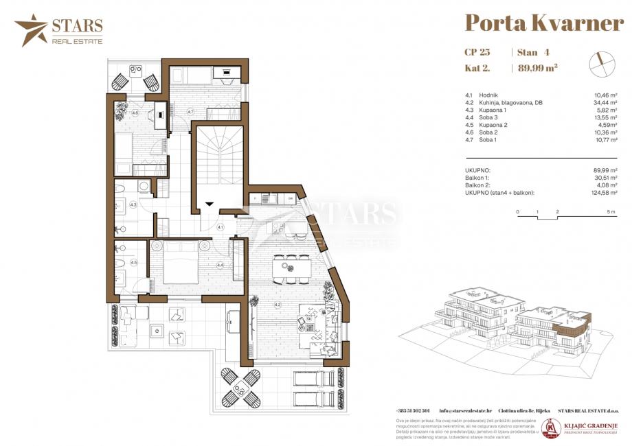 Skupna površina (stanovanje + balkon): 124,58 m²