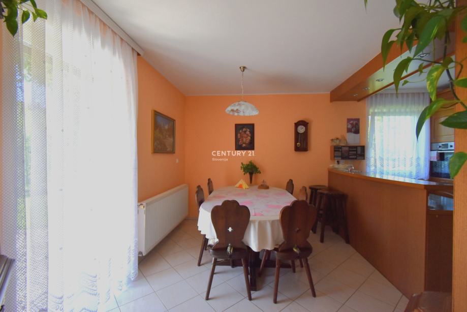 Kuhinja z jedilnico, obrnjena proti vzhodu, z izhodom na teraso