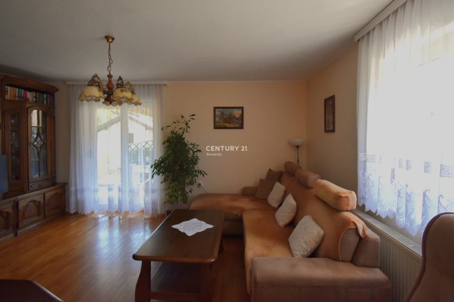 Dnevna soba, orientirana proti jugu, prav tako z izhodom na prostorno pokrito teraso, uporabno v vseh vremenskih razmerah