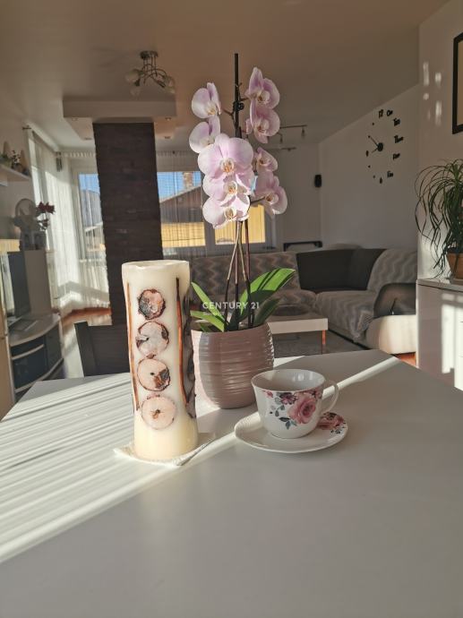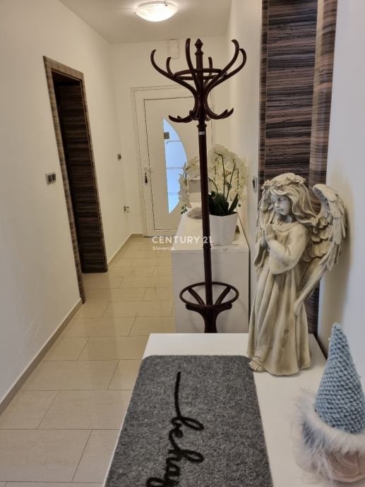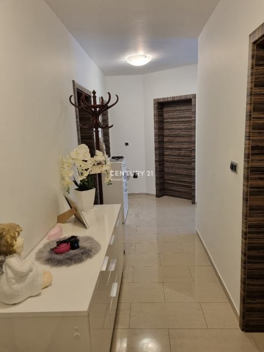 2. stanovanje je velikosti 110,8 m2 in zajema: hodnik, kuhinjo z jedilnico in dnevni prostor z balkonom, spalnica, otroška soba, pralnica, kopalnica (bana in tuš) z wc. Stanovanje je obnovljeno.