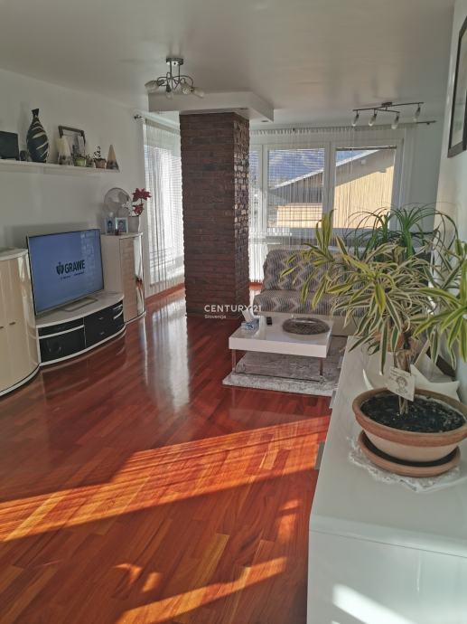 1. stanovanje je velikosti 101,8 m2 in zajema: hodnik, kuhinjo z jedilnico in dnevni prostor, spalnico, otroško sobo ter kopalnico (bana) z wc. Stanovanje ima dva balkona. Potrebno delne obnove.