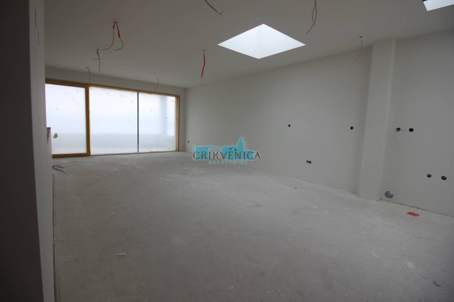 Luksuzno dvoetažno stanovanje za prodajo v novi stavbi. Stanovanje s skupno površino 150,48 m2 je zasnovano tako, da sta v 1. nadstropju 2 spalnici, vsaka s kopalnico, medtem ko je v 2. nadstropju velika dnevna soba s kuhinjo in jedilnico s skupno površino 42,30 m2 ter še ena spalnica z lastno kopalnico. Vsako nadstropje ima balkon s panoramskim pogledom na morje. Oba balkona sta približno 16 m2. Nadstropja so med seboj povezana z notranjim stopniščem, stavba pa ima tudi zunanje stopnišče in dvigalo, ki povezuje vsa nadstropja. Postavitev prostora s kvadraturo je najbolje vidna iz tlorisa.