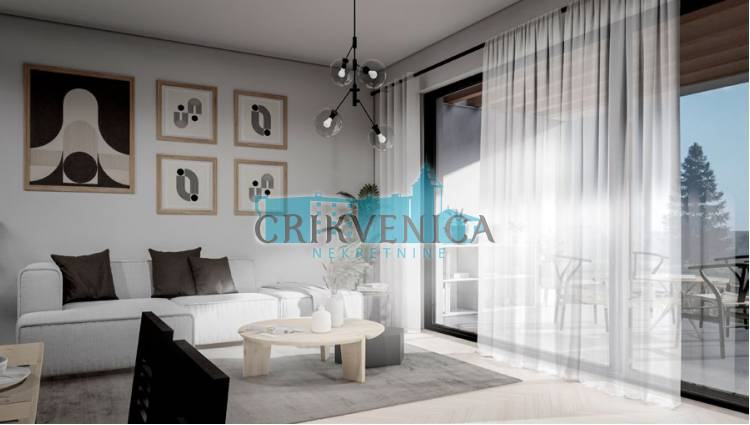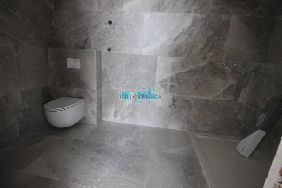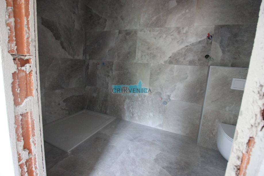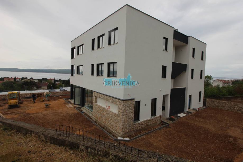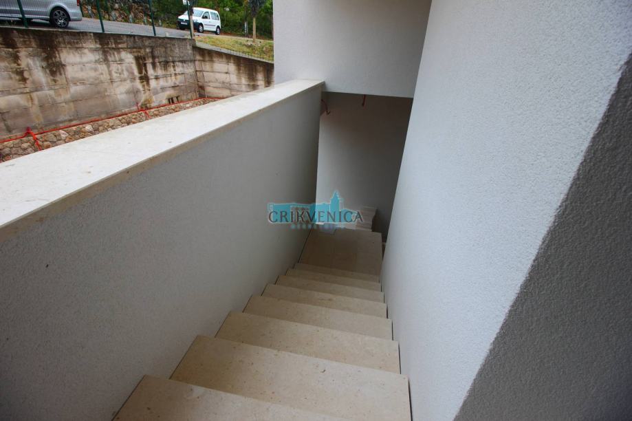 Luksuzno dvoetažno stanovanje za prodajo v novi stavbi. Stanovanje s skupno površino 150,48 m2 je zasnovano tako, da sta v 1. nadstropju 2 spalnici, vsaka s kopalnico, medtem ko je v 2. nadstropju velika dnevna soba s kuhinjo in jedilnico s skupno površino 42,30 m2 ter še ena spalnica z lastno kopalnico. Vsako nadstropje ima balkon s panoramskim pogledom na morje. Oba balkona sta približno 16 m2. Nadstropja so med seboj povezana z notranjim stopniščem, stavba pa ima tudi zunanje stopnišče in dvigalo, ki povezuje vsa nadstropja. Postavitev prostora s kvadraturo je najbolje vidna iz tlorisa.