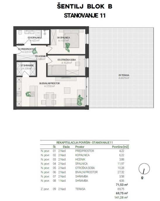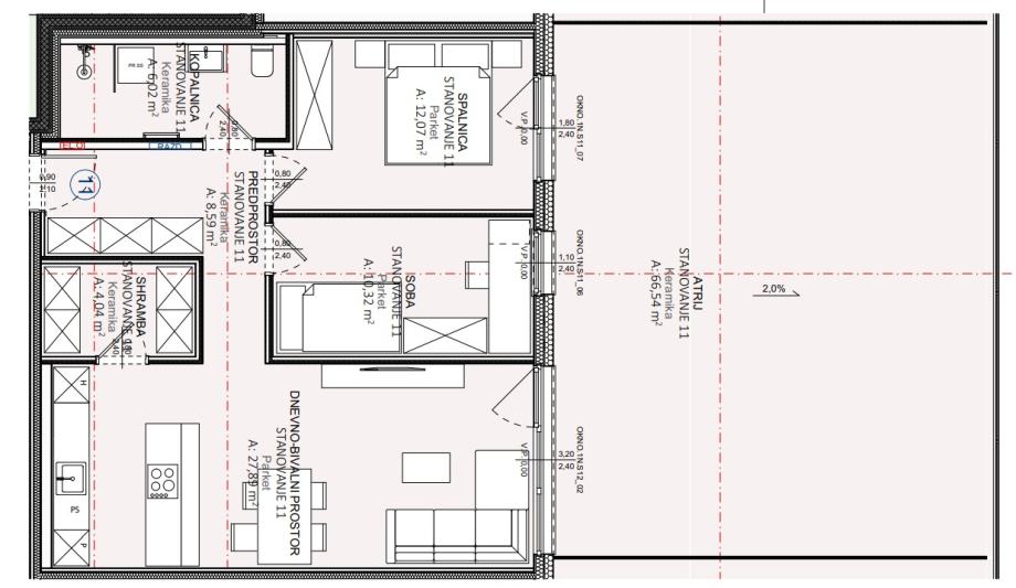 Stanovanje ima naslednjo razporeditev: