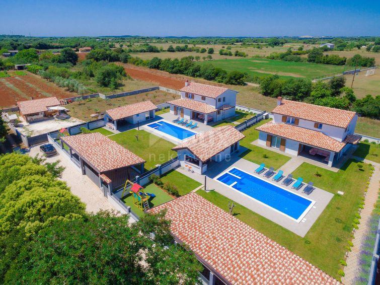 Vile ponujajo tudi urejena zemljišča s pomožnimi objekti in bazene s prostori za sončenje, otroške parke, zeleno površino in pokrito zasebno parkirišče. Vsaka nepremičnina meri 340 m2 in je sestavljena iz predprostora z manjšo shrambo pod stopnicami, velike dnevne sobe s kuhinjo in jedilnico ter ene spalnice. Iz opisanega pritličja se po omenjenem stopnišču povzpnemo v prvo nadstropje hiše, kjer se nahajata še dve spalnici z lastnimi kopalnicami. Vile se prodajajo v celoti opremljene in imajo kapaciteto za 12-14 oseb, kar je idealna priložnost za najem in nadaljevanje utečenega poslovanja, glede na lokacijo in neoviran pogled na okolje in zelenje pa je lahko dodaten mir odlična priložnost za družinsko življenje.