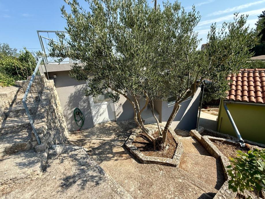 Parcela velikosti 415 m² vključuje vrt, teraso, oljko, ki nudi prijetno senco, parkirni prostor in še dovolj prostora za dodatno zelenje.