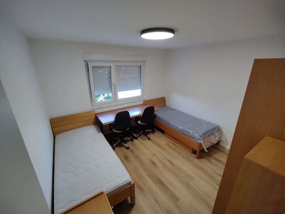 Oprema vključuje: posteljo, pisalno mizo z stolom, garderobno omaro ter pomožni predalnik
