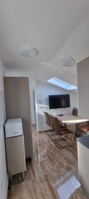 V novogradnji oddam sobo v stanovanju , v mansardi (2. nadstropje). Stanovanje je neto površine 70m2, ima kopalnico z wc-jem, dodatni wc, tri enoposteljne sobe, eno dvoposteljno sobo, jedilnico in kuhinjo. Stanovanje ima 5 parkirnih mest, zunaj ima na voljo 20 m2 za preživljanje prostega časa na prostem. Stanovanje je popolnoma opremljeno, ima kabelsko tv, EON, internet in televizijski sprejemnik Sony. Ogrevanje je talno, plinsko, dodatno še električno, hlajenje z klimatsko napravo. Kuhinja je opremljena z hladilnikom, zamrzovalnik, plinsko – električna kuhalna plošča, električna pečica, mikrovalovna pečica. Kajenje v stanovanju ni dovoljeno.