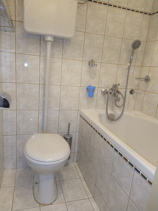 Stanovanje ima predsobo z garderobo , kopalnico s kopalno kadjo in WC – jem .