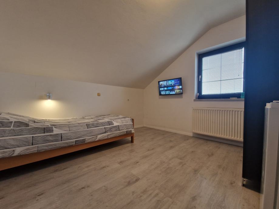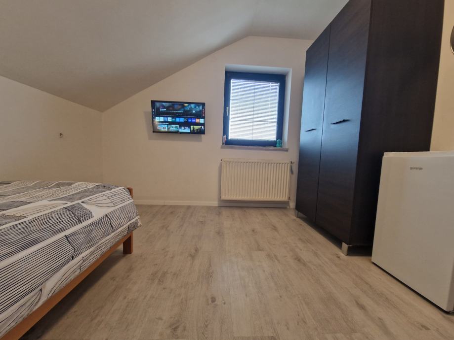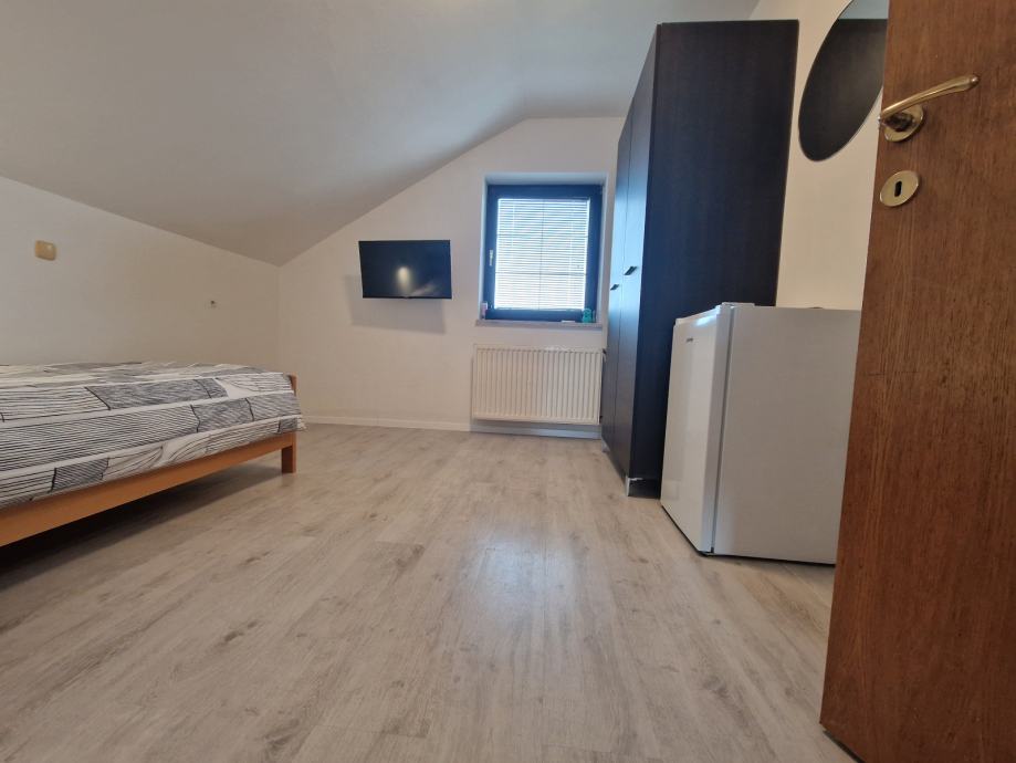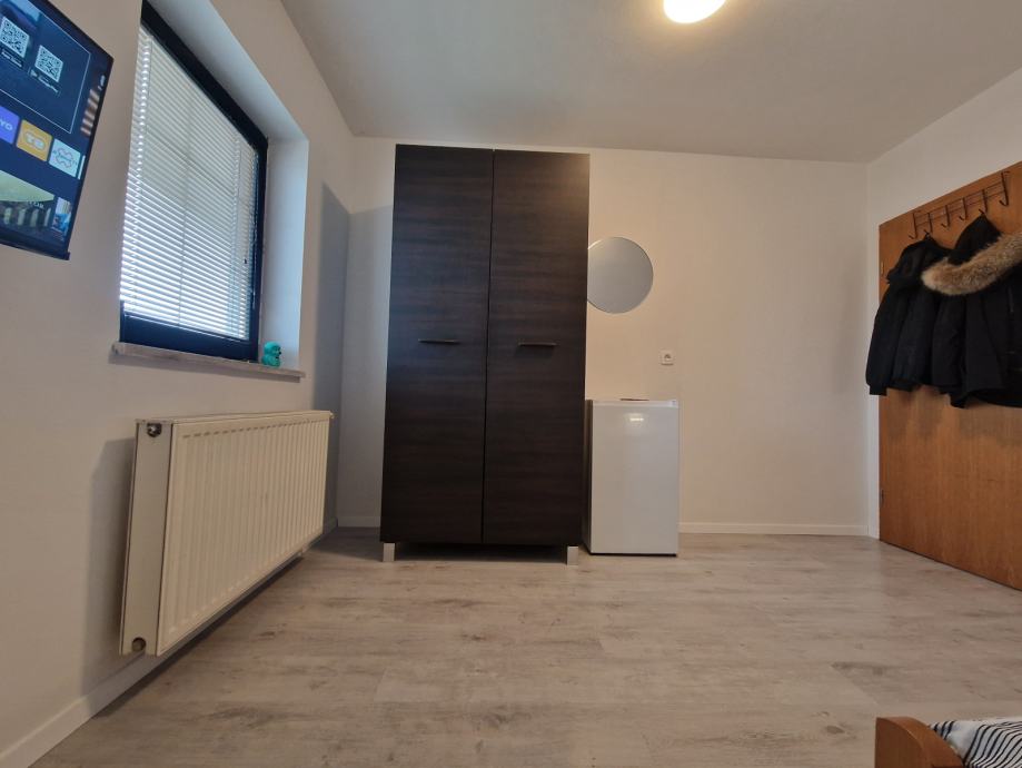 Soba v hiši, s souporabo WC, kopalnice in kuhinje, samo 4 osebe na nadstropju. V sobi je smart TV, NEO, hladilnik z zamrzovalnim predalom, v objektu je hitri optični internet, nameščena je varnostna ključavnica, na sobi so nameščena prava vhodna vrata, s cilindrično ključavnico, na dvorišču je parkirišče za 12 vozil. Potrebno je plačilo varščine, soba je vseljiva 1.8.2025