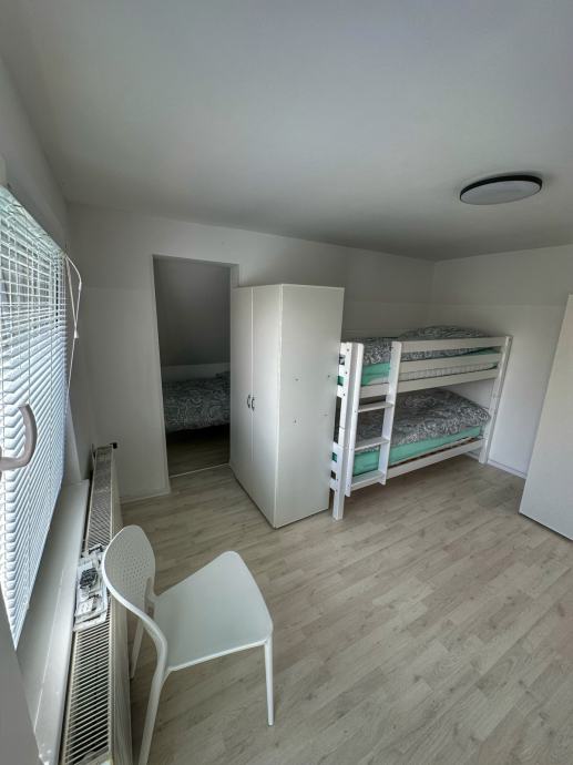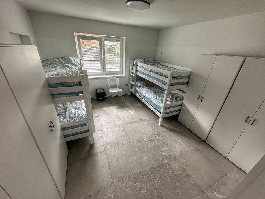 - 5 sob v hiši (2 dvoposteljne, 1 troposteljna, 2 štiriposteljne).