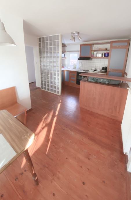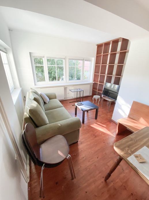 Soba 16 m2 z veliko svetlobe, obrnjena na zahod, delno opremljena (postelja 140 cm x 200 cm, nočna omarica), v 90 m2 stanovanju s tremi ločenimi sobami in souporabo skupnih prostorov: kuhinja, kopalnica, dnevna soba. Stanovanje se nahaja v 1. nadstropju hiše. Parkirnega mesta ni. V stanovanju bivata študent in študentka, oba stara 20 let.