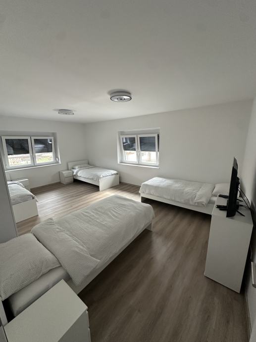 Oddajajo se postelje v dveh štiri posteljnih sobah in eni dvoposteljni sobi z skupno kopalnico in skupno kuhinjo. Cena je 200€osebo/mesec. Vključno z vsemi stroški (elektrika, voda, ogrevanje, odvoz smeti, internet).
