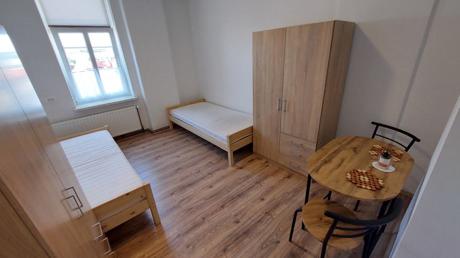 Oprema : Omara, miza s stoli, postelja, obešalnik.