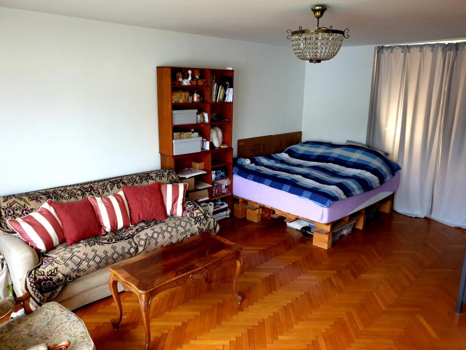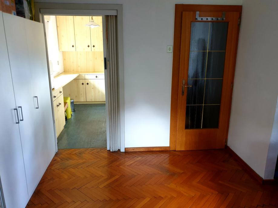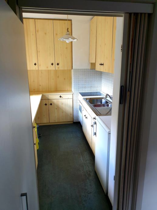 1. SOBA Z LASTNO KUHINJO, ki ima izhod na pokrito teraso (najemnina: 310 EUR/mesec + tekoči stroški na osebo: 100,00 EUR/mesec). Soba je svetla in meri 45m2 ter je primerna za dve urejeni osebi ali par (zaželeni študenti višjih letnikov ali mlajši zaposleni iz Slovenije).