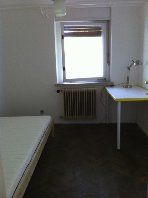 3. ENOPOSTELNJA SOBA (najemnina: 135 EUR/mesec za sobo + tekoči stroški na osebo: 100 EUR/mesec). Manjša in prijetna enoposteljna soba s souporabo skupne kuhinje, kopalnice in vrta.