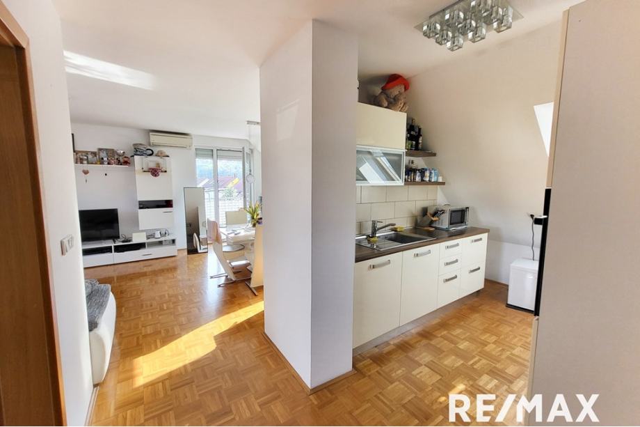 Stanovanju pripada nadstrešek za avtomobil in kletna shramba (4 m²)
