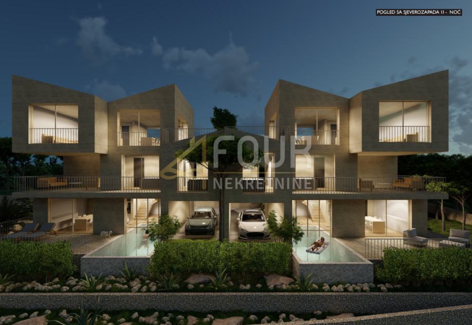 V ponudbi je moderna polovica dvojčka – razkošno večnivojsko stanovanje s skupno površino 230 m², z bazenom, garažo in cca 200 m² urejene okolice.