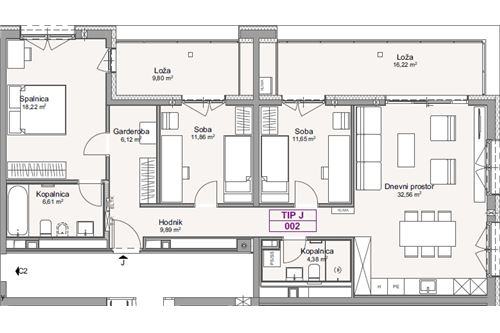 Stanovanje je štiri sobno, v izmeri 127,31 m2 skupaj z ložo.