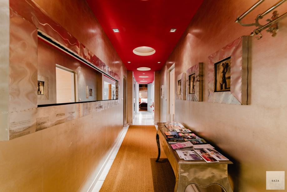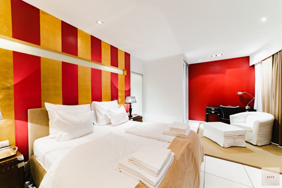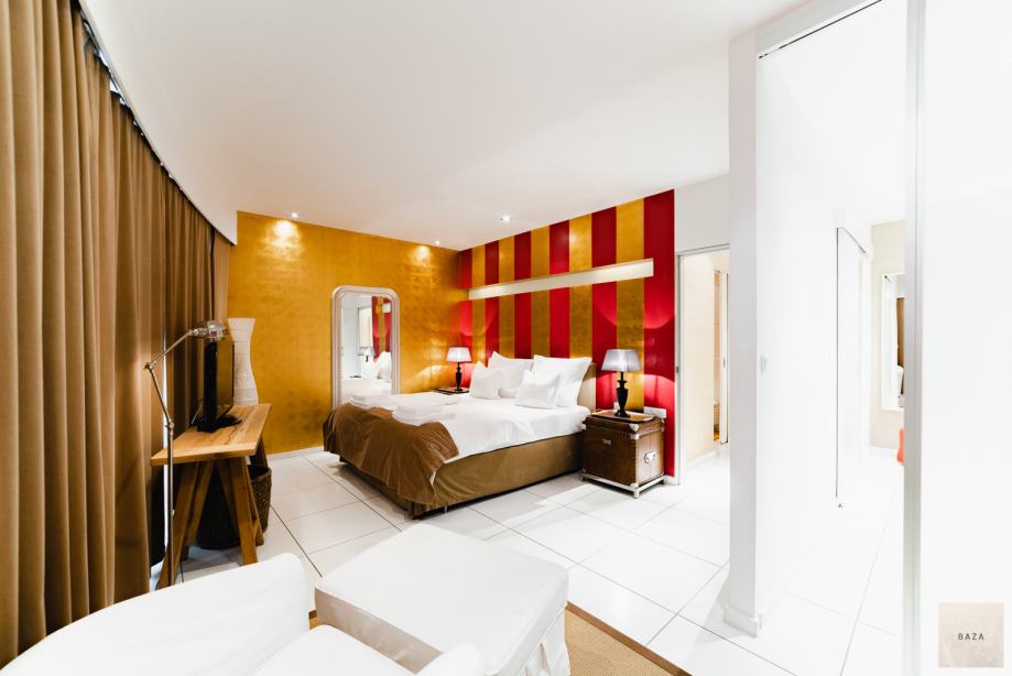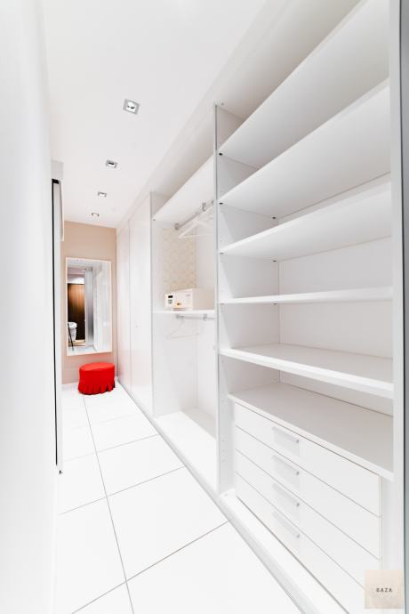 Stanovanje se nahaja v 4. nadstropju in obsega prostoren hodnik, spalnico z lastno kopalnico ter walk-in garderobo, dodatno spalnico s kopalnico (s finsko in turško savno), utility prostor, ločen WC ter kuhinjo v povezavi z jedilnico in velikim bivalnim prostorom, z izhodom na teraso z bazenom in zelenico. Stanovanje je popolnoma opremljeno in je pripravljeno za takojšnjo vselitev.