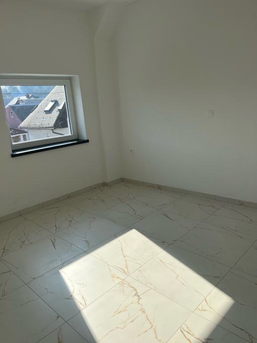 Stanovanje je v prvem nadstropju,do njega vodijo stopnice in zajema veliko teraso,ki je striktno ločena za vas in za soseda,obenem pa ima vsak svoj ločen vhod.