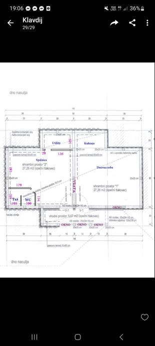 Možnost brezplačnega parkiranja na nepokritem parkirišču do 4 avtomobilov. Hiša ni podkletena. Streha in tri stranice stavbe so zasute z zemljo z najvišjo možno izolacijo, zato so stroški ogrevanja minimalni.