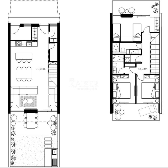 Kaiser Immobilien predstavlja: Otok Rab, Barbat - Luksuzni dupleks apartmaji z vrtom in pogledom na morje V tem čudovitem okolju na otoku Rabu se nahaja nov luksuzni stanovanjski objekt s tremi prostornimi dupleks apartmaji v nizu, vsak ločen s svojim vhodom in vrtom, z možnostjo izgradnje bazena. Gradnja se je začela, v tej fazi gradnje so možne spremembe načrta po željah in potrebah kupca, prodajalec pa nudi popust na vsa tri stanovanja v tej fazi gradnje. Ob vstopu v vsako stanovanje pridete na hodnik, ki vas pripelje do osrčja doma, odprtega koncepta dnevne sobe, kuhinje in jedilnice. Ta prostoren prostor je napolnjen z naravno svetlobo. Dnevna soba se odpira na zunanjo pokrito teraso in vrt. V pritličju je tudi WC, praktična shramba pod elegantnim stopniščem, ki vodi v zgornje nadstropje. V zgornjem nadstropju so tri udobne spalnice, od katerih ima ena svojo kopalnico in zasebni balkon, medtem ko si drugi dve spalnici delita balkon in glavno kopalnico. Vsak apartma ima pogled na morje. Za lažjo organizacijo vsakodnevnih opravil ima vsako stanovanje pralnico in zaprto zunanjo shrambo. Prvo sodobno zasnovano dupleks stanovanje ima skupno površino 269,5 m2. Skupaj: 269,5 m² Notranja površina: 102,1 m² Predsoba – 3,8 m² Shramba pod stopnicami – 1,9 m² WC – 1,6 m² Dnevna soba, kuhinja in jedilnica – 37,9 m² Stopnišče – 6 m² Zunanja terasa – 13,4 m² Vrt – 138 m² Prvo nadstropje hodnik – 5,8 m² Spalnica 1 – 10,3 m² (z zasebno kopalnico 2,9 m²) Spalnica 2 – 8,6 m² Spalnica 3 – 13,4 m² Glavna kopalnica – 4,3 m² Pralnica – 1,7 m² Zaprta zunanja shramba – 3,9 m² Balkon spalnice 1 in 2 – 7,6 m² Balkon spalnice 3 – 8.4 m² Cena: 440.000 €, (s popustom 350.000 €) Drugo Duplex stanovanje ima skupno površino 154,6 m². Skupna površina: 154,6 m2 Notranja površina: 106 m² Vhod: 3,8 m² Shramba pod stopnicami: 1,9 m² WC: 1,6 m² Dnevna soba, kuhinja in jedilnica: 37,9 m² Stopnišče: 6 m² Zunanja terasa: 13,4 m² Vrt: 19 m² Hodnik: 6 m² Spalnica 1 ( 12,1 m²) s kopalnico (3,3 m²) Spalnica 2: 10,1 m² Spalnica 3: 13,4 m² Glavna kopalnica: 4,3 m² Pralnica: 1,7 m² Zaprta zunanja shramba: 3,9 m² Balkon spalnice 1 in 2 (7,8 m²), balkon spalnice 3 (8,4 m²) Cena: 420.000 €, ( s popustom 330.000 €) Tretje moderno, dvoetažno stanovanje, ima skupna površina 152,9 m². Skupna površina: 152,9 m² Notranji prostor: 104,4 m² Vhodna dvorana: 3,8 m² Prostor za shranjevanje: 1,9 m² WC: 1,6 m² Dnevna soba, kuhinja in jedilnica: 37,9 M² stopnišča 6 m² zunanja terasa: 13,4 m² M² Pralna soba: 1,7 m² Zaprta zunanja shramba: 3,9 m² balkon spalnic 1 in 2: 7,7 m² balkon spalnice 3: 8,4 m² Cena: 420.000 € (s popustom 330.000 €) Barbat je prvo naselje na otoku Rabu, ko prispete s trajektom iz Jablanca proti Mišnjaku, glavnemu trajektnemu pristanišču na otoku. Od Mišnjaka do Barbata je le 4 km, kar ga uvršča med najbolj dostopne dele otoka. Rab, glavno mesto otoka, je oddaljeno približno 5 km in je dostopno po glavni otoški cesti. Najbližje trajektno pristanišče Mišnjak omogoča povezave s celino preko trajektne linije Mišnjak – Jablanac. Vožnja s trajektom traja le 15 minut, Jablanac pa je povezan z glavno cesto proti Senju, Reki in preostali Hrvaški. Reka – Barbat: približno 120 km Zagreb – Barbat: približno 220 km Zadar – Barbat: približno 140 km Split – Barbat: približno 260 km Lopar, severni del otoka, je s trajektom povezan tudi z Valbisko na otoku Krku, kar predstavlja dodatno možnost za prihod na Rab. Barbat je znan po dolgih peščenih plažah in čistem morju, zaradi česar je idealen za družine in tiste, ki iščejo miren dopust. Plaže so večinoma prodnate in peščene, z blagim vstopom v morje. Otoka Dolin in Laganj sta majhna otoška območja pred Barbatom, priljubljena med jadralci in potapljači. Obmorska promenada Barbat - Rab je idealna za kolesarje, sprehajalce in rekreativce ter vodi vse do starega mestnega jedra Raba. Nepremičnina ima vso potrebno dokumentacijo in dovoljenja za gradnjo. Za vse dodatne informacije ali povpraševanje nas z zaupanjem kontaktirajte. Telefon: +385992510230 E-pošta: marijana.papic@kaiser-immobilien.hr