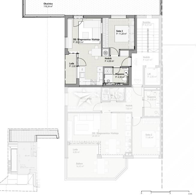 -Največji izkoristek prostora za shranjevanje (vgrajene omare v sobah in vhodnih prostorih).