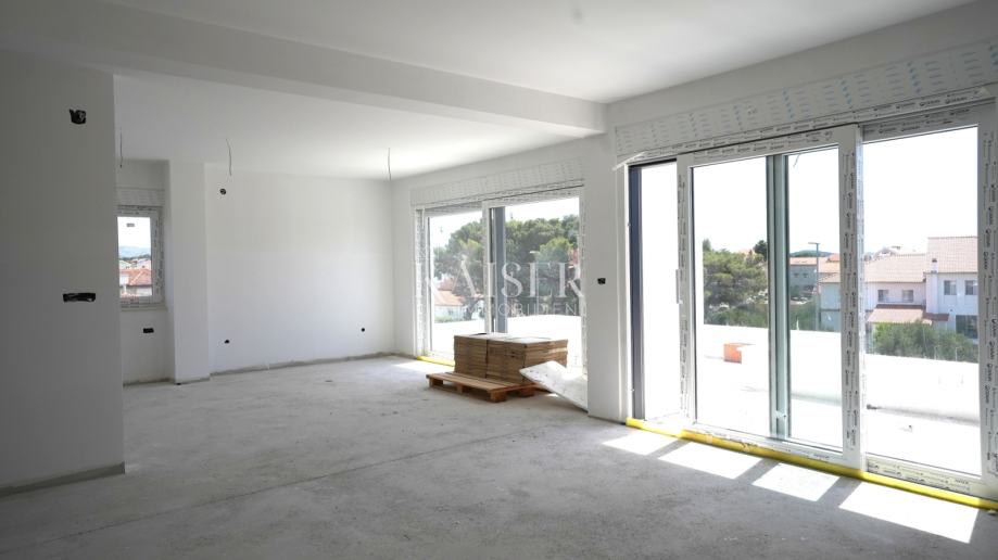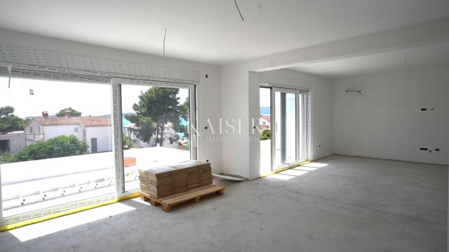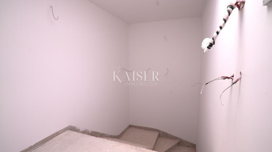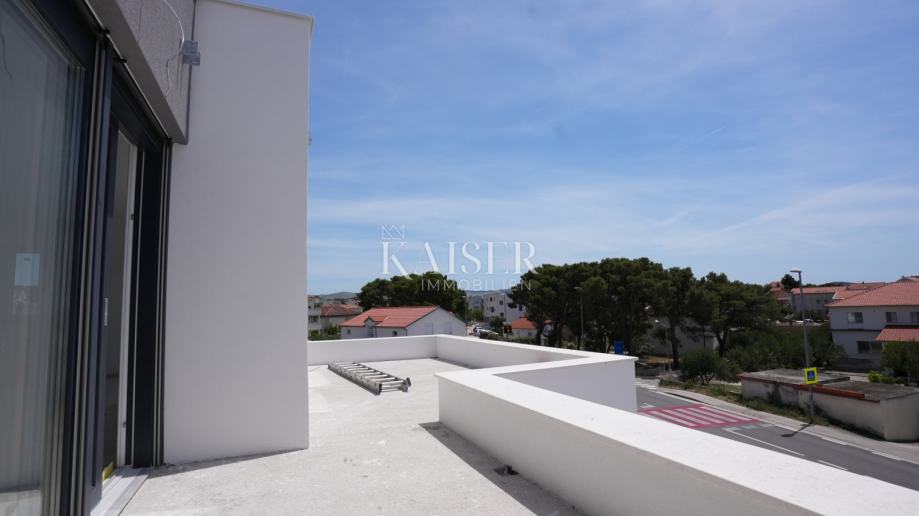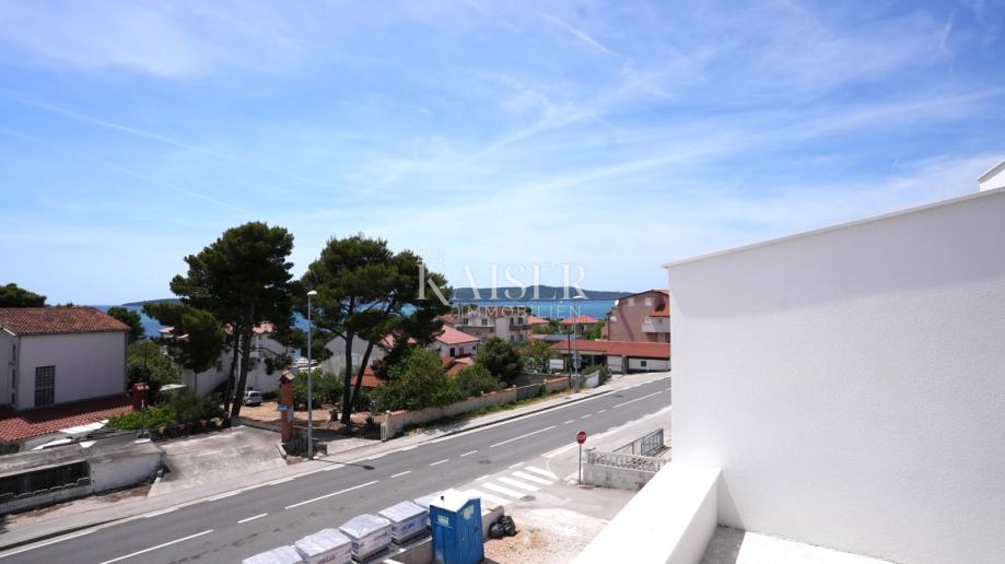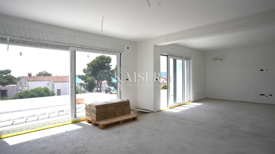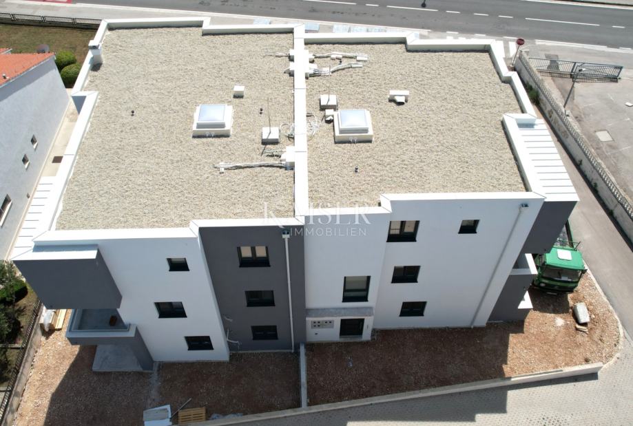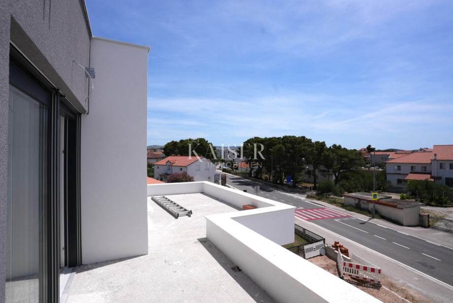 Brodarica – Luksuzni penthouse 98 m² s prostorno teraso 27 m² in odprtim pogledom na morje. Brodarica je mirna in privlačna vasica južno od Šibenika, znana po kristalno čistem morju, urejenih plažah in razgledu na šibenski arhipelag. Zaradi odličnih prometnih povezav (blizu avtoceste A1 in letališča Split) in neposredne bližine Narodnega parka Krka je Brodarica vse bolj priljubljena destinacija tako za družinsko življenje kot za naložbe v turizem. Naprodaj je penthouse s skupno neto površino 98 m², ki se nahaja v drugem nadstropju urbane vile s skupno šestimi stanovanjskimi enotami. Stanovanju pripada tudi prostorna terasa 27 m² s panoramskim razgledom na morje in okoliške otoke – idealno za sprostitev in druženje na prostem. Stanovanje obsega: prostorno dnevno sobo s kuhinjo in jedilnico (45,21 m²), tri spalnice (10,05 m², 11,71 m² in 11,06 m²), tri kopalnice z WC-jem (3,03 m², 2,70 m² in 4,80 m²), garderobno sobo (2,73 m²), balkon (2,57 m²), hodnik (6,85 m²), teraso (27,00 m²). Stanovanju pripadata dve zunanji parkirni mesti velikosti 12,50 m² in 16,06 m2, ki se nahajata pred stavbo. Nepremičnina se prodaja v nedokončani fazi, kar kupcu omogoča samostojno izbiro zaključnih materialov in opreme. Cena vključuje: Pripravo za talno ogrevanje v vseh prostorih (brez toplotne črpalke), Pripravo za klimatsko napravo v vseh spalnicah, Vgrajeno klimatsko napravo v dnevni sobi, Možnost izbire keramike, Možnost izbire kopalniške opreme do vrednosti 1.500 € na kopalnico. Stavba je zgrajena s kakovostnimi materiali: 10 cm debela termo fasada, betonska streha s toplotno izolacijo, PVC stavbno pohištvo z roletami in komarniki. Dvorišče stavbe je ograjeno, vhodna vrata pa so protivlomna. Lokacija v mirni ulici zagotavlja zasebnost in tišino. Bližina ugodnih storitev: Plaža – 150 m Restavracija – 500 m Trgovina – 5 m Center Šibenika – 6 km Narodni park Krka – 16 km Avtocesta A1 – 8 km Letališče Split – 55 km Oddaljenost od večjih mest: Zagreb – 340 km Split – 80 km Zadar – 95 km Reka – 270 km Ljubljana – 390 km Dunaj – 680 km München – 790 km Ta penthouse predstavlja odlično priložnost za tiste, ki si želijo moderno stanovanje v mirnem okolju z odprtim pogledom na morje, z možnostjo opremljanja notranjosti po lastnih željah, pa tudi za investicijo v turistični najem. Provizija agencije za kupca znaša 3 % + DDV in se plača v primeru nakupa nepremičnine, ob sklenitvi prve pravne listine. Ogled nepremičnine je možen le ob predhodnem podpisu pogodbe o posredovanju pri prometu z nepremičninami. Če si želite nepremičnino ogledati osebno, se obrnite na: Joška Bašića E-pošta: josko@kaiser-immobilien.hr Tel: +385-91-511-2693 http://kaiser-immobilien.hr/