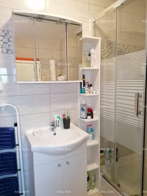 Stanovanje se nahaja v prvem nadstropju stanovanjske stavbe in obsega 45 m2 površine, vključuje pa prostorno dnevno sobo, kuhinjo z jedilnico, dve spalnici, hodnik in kopalnico. Stanovanje je opremljeno s klimo za ogrevanje, obstaja pa tudi možnost ogrevanja na pelete ali drva zahvaljujoč obstoječemu dimniku.