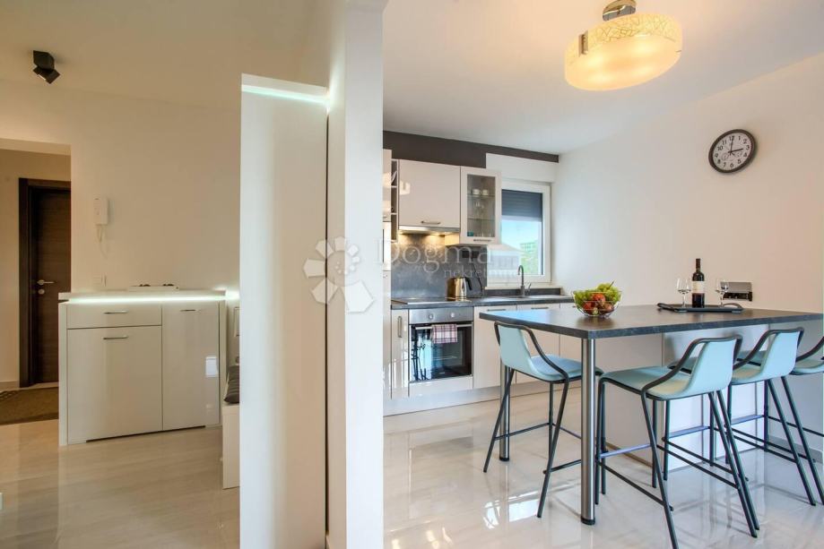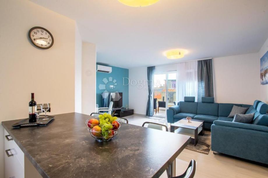 Moderno stanovanje v Puli, le pet minut hoje od centra mesta. Nahaja se v četrtem nadstropju moderne stavbe z dvigalom in garažo iz leta 2018. Skupna neto bivalna površina znaša 58,60 m².