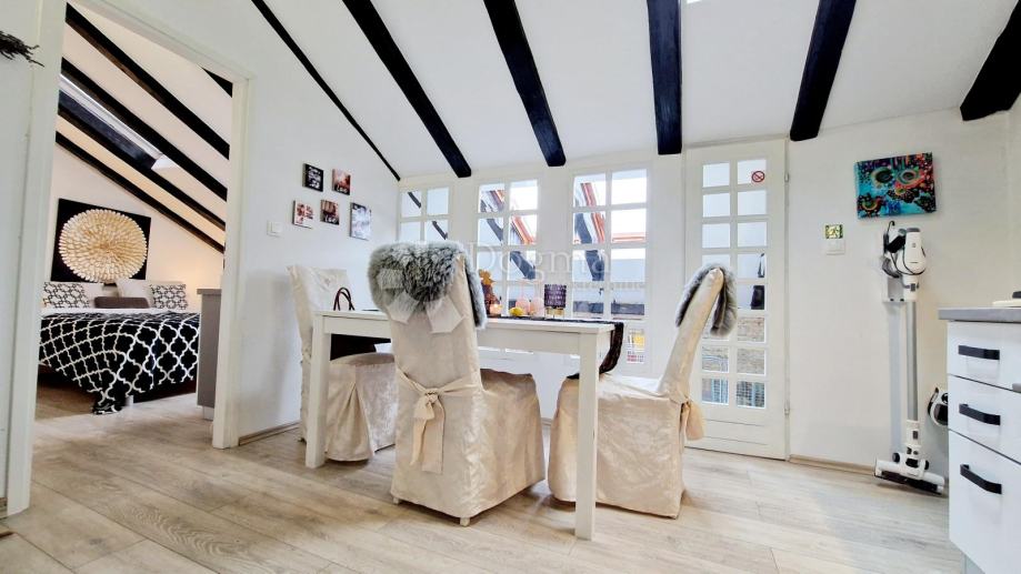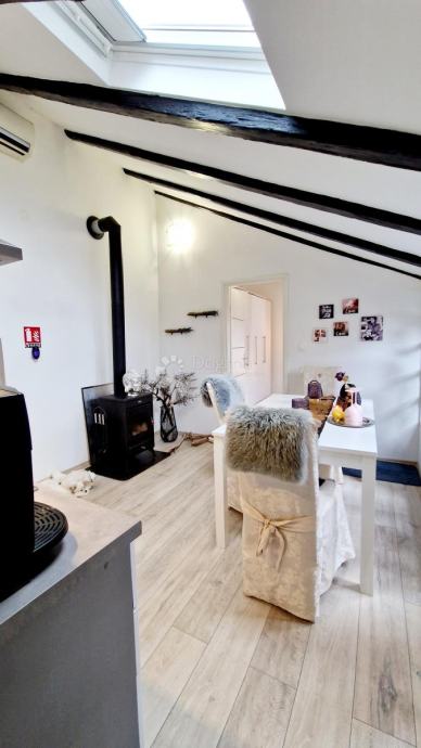 V središču zgodovinskega Pulja, kjer se preteklost in sedanjost srečujeta na vsakem koraku, se nahaja to očarljivo stanovanje v bližini gledališča - pravo zatočišče za tiste, ki želijo mesto doživeti v največji možni meri. Avto tukaj ni potreben, saj so le nekaj minut hoje oddaljeni vsi čari mesta: zgodovinske znamenitosti, ki pripovedujejo zgodbe starih časov, živahna tržnica in ribarnica z vonjem po svežih morskih sadežih, očarljive trgovinice, kavarne in restavracije, napolnjene z vzdušjem Sredozemlja, obmorske promenade in skriti mestni trgi. Stanovanje z neto zmanjšano površino 61 m² se nahaja v tretjem nadstropju starejše, a skrbno vzdrževane stavbe, ki izžareva značaj preteklih obdobij. Je v celoti urejen in opremljen s premišljenimi detajli, ki ustvarjajo prijeten ambient. Sestoji iz predsobe, prostorne dnevne sobe, kuhinje z jedilnico, spalnice, kopalnice in terase. Vsaka soba je klimatizirana, toplino doma pa dodatno popestri peč na drva. Za posebno vzdušje poskrbijo strešna okna, ki ponujajo pogled na dinamično središče Pulja - mesta, ki živi dan in noč, kjer se preteklost čuti v tlakovanih ulicah, sedanjost pa v živahnem ritmu vsakdanjega življenja. Stanovanju pripada parkirno mesto na dvorišču stavbe, ki pa ga morda niti ne boste potrebovali - saj je tu vse najlepše doživeti peš.