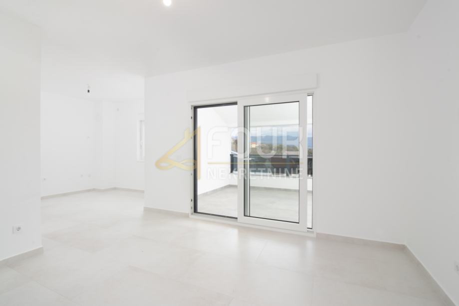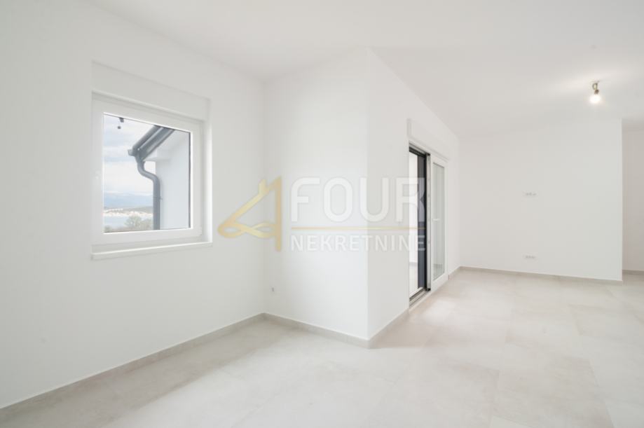 Prodaja se sodobno stanovanje v novogradnji, ki se nahaja v mirnem naselju Čižići na otoku Krku. Stanovanje se nahaja v pritličju niza treh stanovanjskih stavb, vsaka s po tremi stanovanji, in zavzema celotno etažo pritličja.