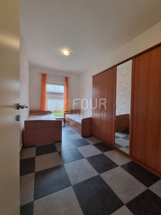 Kopalnica je funkcionalno razdeljena, z ločenim prostorom za tuš in WC, kar povečuje praktičnost, še posebej v družinskih pogojih.