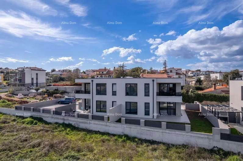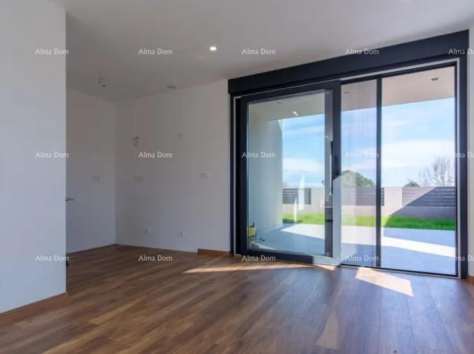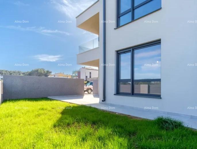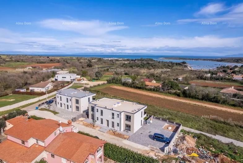 Ližnjan, stanovanjski gradbeni projekt le 300 m od morja, prodaja stanovanje v pritličju moderne stavbe s skupno štirimi stanovanjskimi enotami.