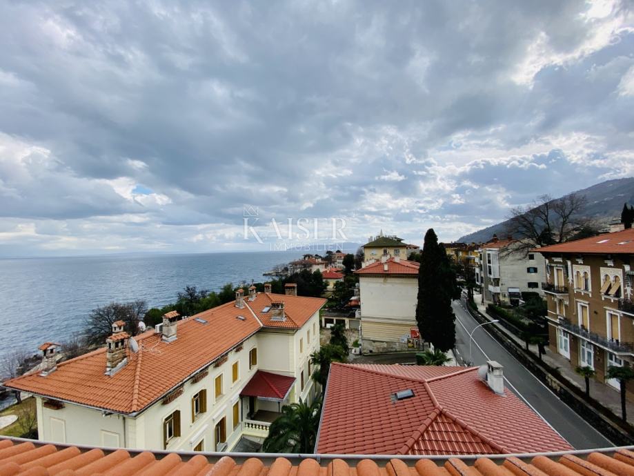 Nepremičninska agencija Kaiser Immobilien iz Opatije iz svoje bogate ponudbe izbira prostorno stanovanje, ki se nahaja v visokem podstrešju zgodovinske stanovanjske stavbe v samem centru Lovrana.