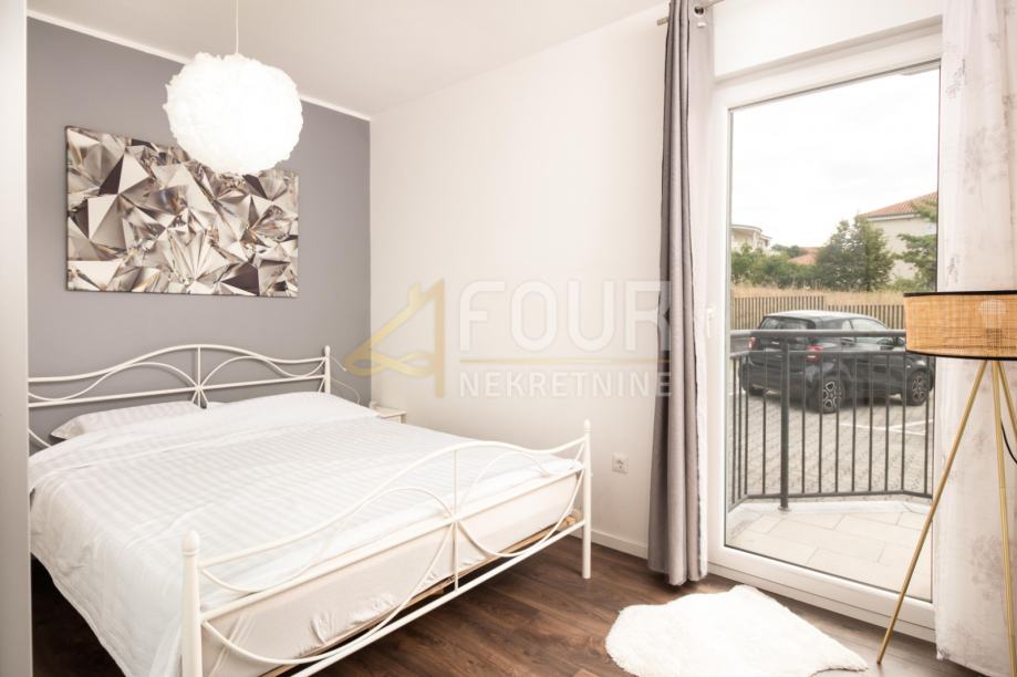 Stanovanje se prodaja v celoti opremljeno (razen vrtnega pohištva na terasi) in je takoj vseljivo. Pripada mu zunanje parkirno mesto, stanovalcem pa je na voljo tudi skupna zelenica z lepo urejenim dvoriščem in bazenom, ki ga uporabljajo vsi stanovalci stavbe.