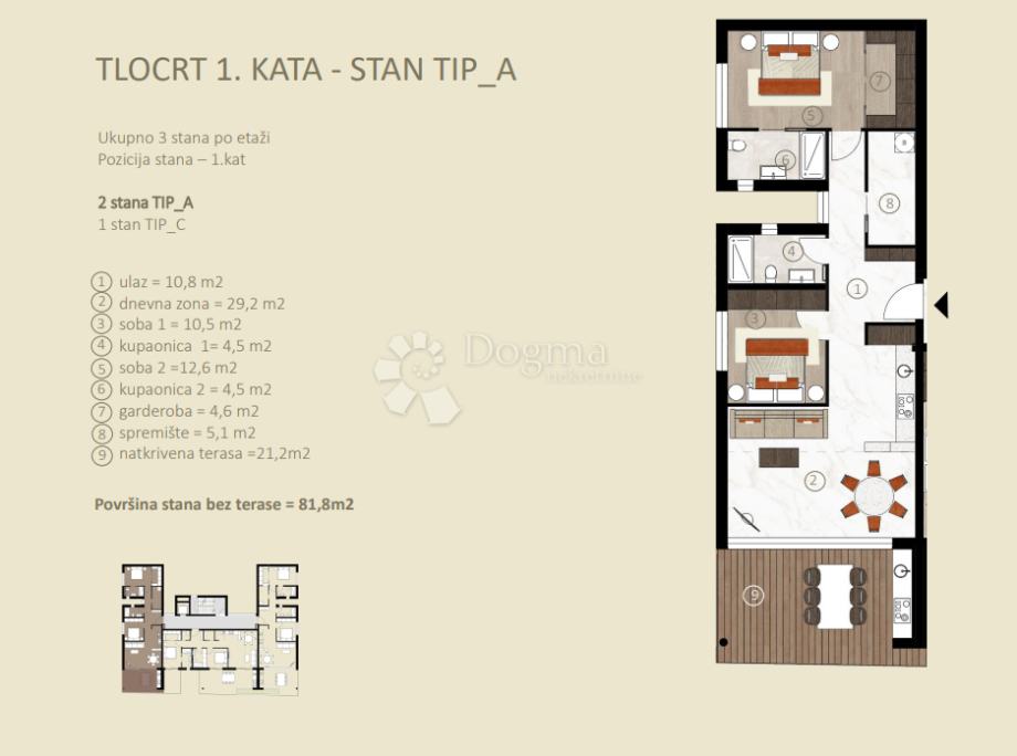 Površina stanovanja brez terase in vrta: 81,80 m²