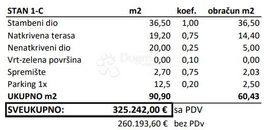 Navedena cena se nanaša na neto površino z vključenimi koeficienti, ki znaša: 60,43 m²