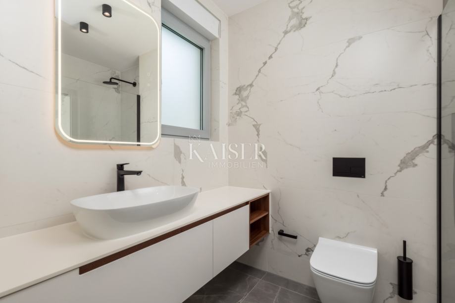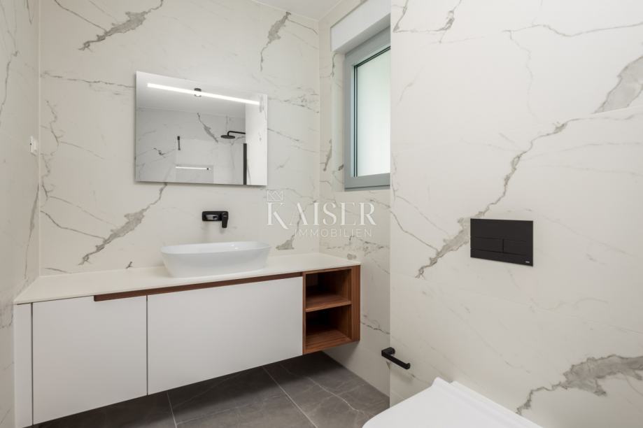 OPATIJA, LUKSUZNO STANOVANJE S POGLEDOM NA MORJE, V NOVOGRADNJI Z BAZENOM! Prodamo luksuzno 2-sobno + dnevno stanovanje v novi stavbi z bazenom, dvigalom in podzemno garažo, ki se nahaja na mirni lokaciji v bližini morja in centra Opatije! Ta vrhunska nepremičnina vam ponuja moderen dizajn, razkošno eleganco, zasebnost in udobje ter spektakularne poglede na center Opatije in morje, s svojim modernim arhitekturnim slogom in najboljšimi materiali pa postavlja nove standarde luksuza. Zaradi svoje lokacije v mirnem delu Opatije boste uživali v občutku zasebnosti in miru, hkrati pa uživali v osupljivem razgledu na središče Opatije in očarljivo obalo Jadranskega morja. 2. NADSTROPJE LEVO - P5 Cena - 685.200 € GLAVNE ZNAČILNOSTI • 2 spalnici, 2 kopalnici, 1 WC • skupna površina stanovanja izražena s koeficienti: 105,42 m2 • bruto površina stanovanja: 101,29 m2 • notranja površina stanovanja: 81,45 m2 • balkon: 19,84 m2 • 2 garažni parkirni mesti: PM9 13,14 m2, PM20 13,25 m2 • shramba BIC1: 1,71 m2 To čudovito stanovanje je zasnovano za maksimalno udobje in luksuz. Na voljo so vam predsoba, WC, dve spalnici z lastnimi kopalnicami, prostorna dnevna soba s kuhinjo in jedilnico ter prostoren balkon - idealen kraj za druženje z družino in prijatelji ter uživanje v res spektakularnem pogledu na morje in Opatijo. Poleg tega stanovanju pripada 1 parkirno mesto v garaži in 1 zunanje parkirno mesto. OPREMA • ventilatorski konvektorji za energetsko učinkovito ogrevanje in hlajenje • vrhunsko aluminijasto stavbno pohištvo • električne žaluzije • vrhunske sanitarije • varnostna vhodna vrata • dvigalo • skupni bazen Ta vrhunska nepremičnina vam nudi neverjetno luksuzen bivalni prostor z visoko kakovostno opremo in spektakularnim pogledom na morje ter se nahaja v neposredni bližini morja in plaž ter vseh potrebnih dobrin dnevno življenje izjemno praktično in udobno. Opatija, biser Jadrana, je eno izmed najbolj iskanih in zaželenih krajev za življenje in dopust na Hrvaškem. Zaradi neustavljive kombinacije naravnih lepot, bogate zgodovine in arhitekture ter sodobnega udobja je resnično izjemna in očarljiva destinacija. CENA Navedena cena se nanaša na popolnoma dokončano stanovanje na ključ, brez pohištva. Cena vključuje DDV, kupec je oproščen plačila davka na nepremičnine. V primeru nakupa pri podjetju, registriranem na Hrvaškem, je po prodaji možno celotno vračilo DDV. Oddaljenost od evropskih mest z avtom: Berlin 10 h Dunaj 4h,30 min Trst 1 h,30 min Zagreb 1h,30 min Ljubljana 1 h 40 min Za ogled pokličite agenta Eli Lovko +385 916133776 Agencijska provizija 3%+DDV
