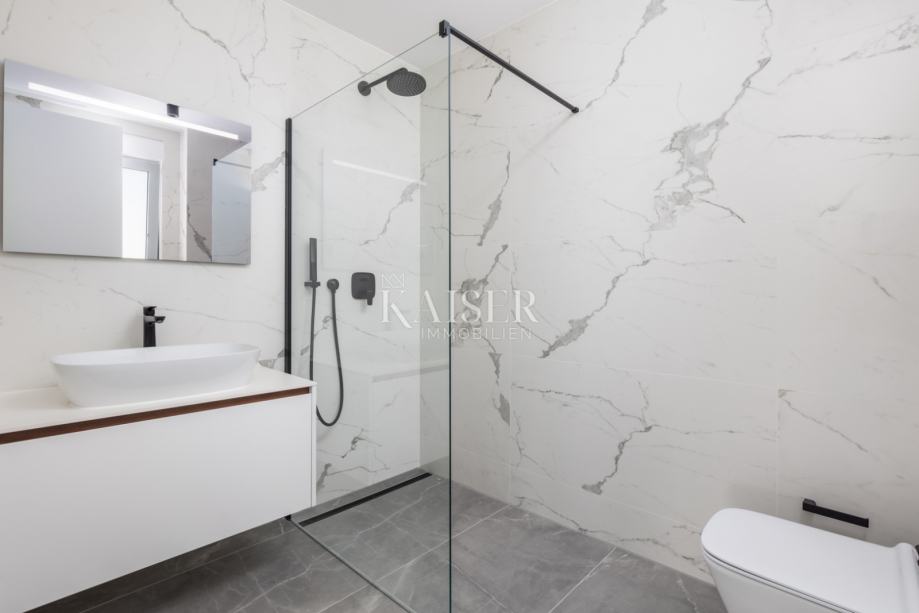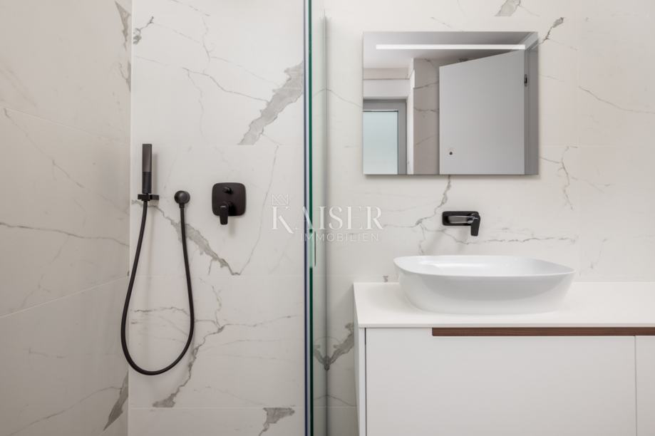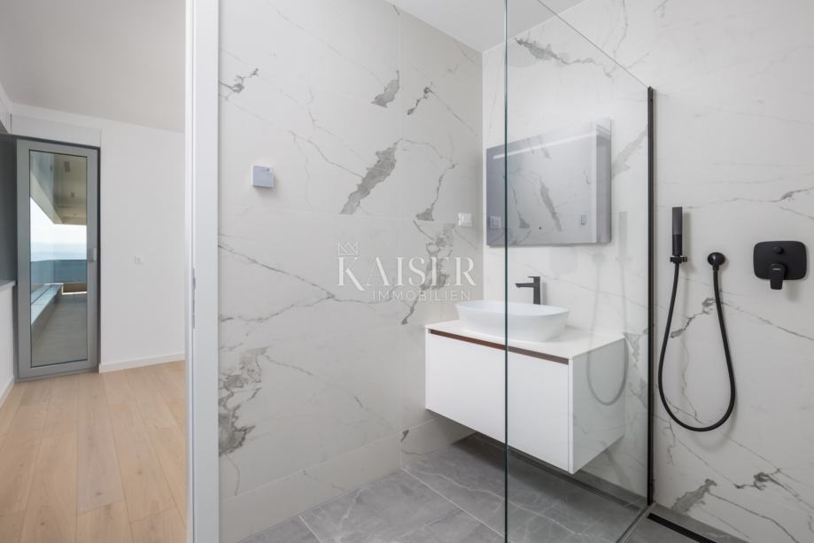 Prodamo luksuzno 2-sobno + dnevno stanovanje v novi stavbi z bazenom, dvigalom in podzemno garažo, ki se nahaja na mirni lokaciji v bližini morja in centra Opatije! Ta vrhunska nepremičnina vam ponuja moderen dizajn, razkošno eleganco, zasebnost in udobje ter spektakularne poglede na center Opatije in morje, s svojim modernim arhitekturnim slogom in najboljšimi materiali pa postavlja nove standarde luksuza. Zaradi svoje lokacije v mirnem delu Opatije boste uživali v občutku zasebnosti in miru, hkrati pa uživali v osupljivem razgledu na središče Opatije in očarljivo obalo Jadranskega morja. 2. NADSTROPJE DESNO - P7 Cena - 718.500 € GLAVNE ZNAČILNOSTI • 2 spalnici, 2 kopalnici, 1 WC • skupna površina stanovanja izražena s koeficienti: 110,54 m2 • bruto površina stanovanja: 107,41 m2 • notranja površina stanovanja: 82,34 m2 • balkon: 25,07 m2 • 2 garažni parkirni mesti: PM11 13,25 m2, PM12 14,66 m2 • 2 shrambi: BIC3 1,68 m2, BIC4 1,73 m2 To čudovito stanovanje je zasnovano za maksimalno udobje in luksuz. Na voljo so vam predsoba, WC, dve spalnici z lastnimi kopalnicami, prostorna dnevna soba s kuhinjo in jedilnico ter prostorna terasa - prostor za druženje z družino in prijatelji ter uživanje v res spektakularnem pogledu na morje in Opatijo. OPREMA • ventilatorski konvektorji za energetsko učinkovito ogrevanje in hlajenje • vrhunsko aluminijasto stavbno pohištvo • električne žaluzije • vrhunske sanitarije • varnostna vhodna vrata • dvigalo • skupni bazen Ta vrhunska nepremičnina vam nudi neverjetno luksuzen bivalni prostor z visoko kakovostno opremo in spektakularnim pogledom na morje ter se nahaja v neposredni bližini morja in plaž ter vseh potrebnih dobrin dnevno življenje izjemno praktično in udobno. Opatija, biser Jadrana, je eno izmed najbolj iskanih in zaželenih krajev za življenje in dopust na Hrvaškem. Zaradi neustavljive kombinacije naravnih lepot, bogate zgodovine in arhitekture ter sodobnega udobja je resnično izjemna in očarljiva destinacija. CENA Navedena cena se nanaša na popolnoma dokončano stanovanje na ključ, brez pohištva. Cena vključuje DDV, kupec je oproščen plačila davka na nepremičnine. V primeru nakupa pri podjetju, registriranem na Hrvaškem, je po prodaji možno celotno vračilo DDV. Lokacija je oddaljena od večjih mest: Rijeka 20 min vožnje, Zagreb 1h 30 min, Dunaj 5h, Berlin 10h, Trst 1h 30 min, Ljubljana 1h 40 min, letališče Pula 1h 30min, letališče Krk 40 min. Za vsa vprašanja se obrnite na vašega agenta Eli Lovko tel. +385 (0)916133776 Agencijska provizija znaša 3% + DDV