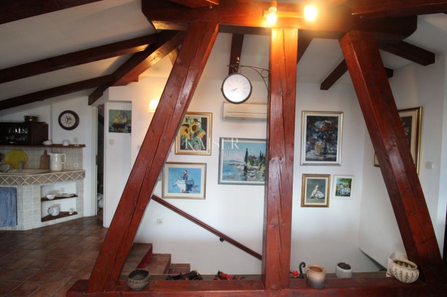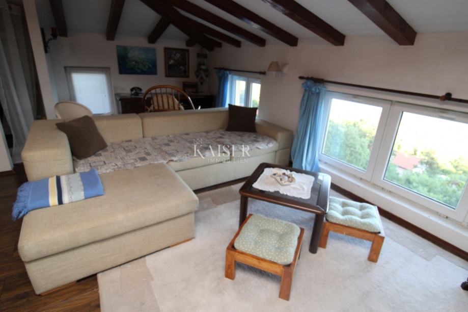 7 minut vožnje z avtomobilom od centra Opatije in opatijske tržnice v naselju Kaiser immobilie ponuja nepremičnino za stanovanje ali investicijo v turistične namene. Stanovanje se nahaja v 1. nadstropju in mansardi in obsega spalnico in kopalnico v 1. nadstropju, stopnišče, kopalnico, spalnico, spalnico in dnevno sobo s kuhinjo v mansardi v skupni izmeri 78 m2 z balkonom je eno parkirno mesto na vrtu. Stanovanje je obrnjeno na jug, iz dnevne sobe in balkona pa je pogled na Opatijo in Liburnijsko obalo. Prve opatijske plaže se nahajajo 5 minut vožnje z avtomobilom ali 15 minut peš. Električno ogrevanje in hlajenje s klimatsko napravo. Objekt je dobro vzdrževan, streha in fasada sta stabilni. Lokacija je oddaljena od večjih mest: Reka 20 minut vožnje, Zagreb 1 ura 30 minut, Dunaj 5 ur, Berlin 10 ur, Trst 1 ura 30 minut, Ljubljana 1 ura 40 minut, letališče Pulj 1 ura 30 minut, letališče Krk 40 minut . Za vsa vprašanja se obrnite na vašega agenta Eli Lovko tel. 0916133776 pokliči Hrvaška +385 Agencijska provizija je 3%+DDV