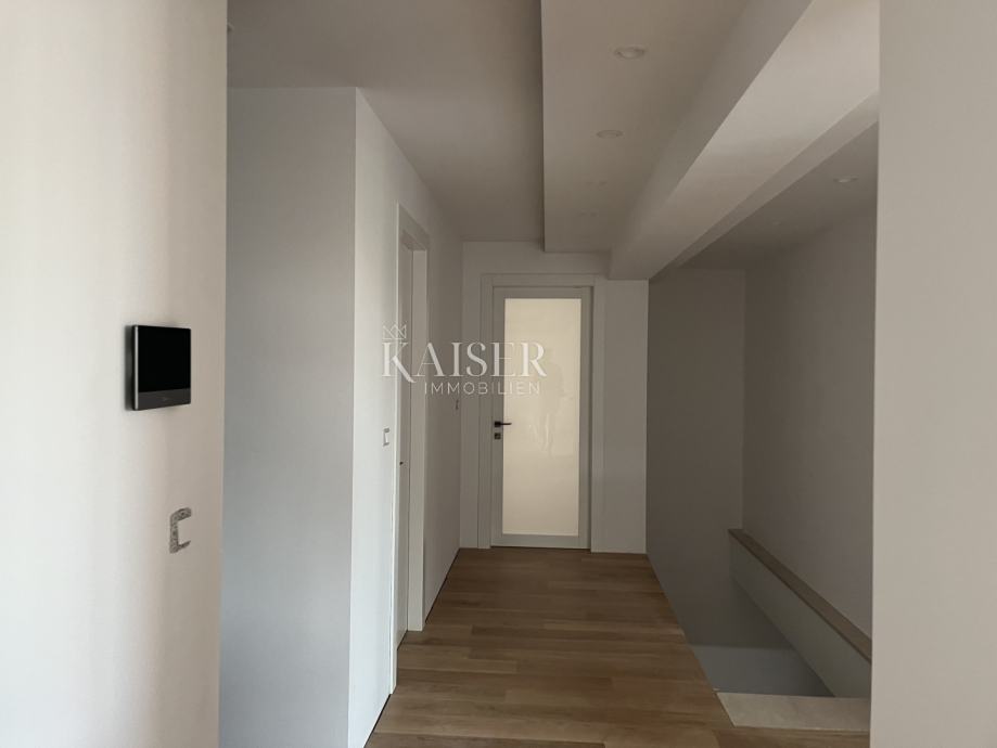 Kaiser Immobilien daje na trg čudovito sončno stanovanje v novogradnji v centru Opatije. Do znamenite opatijske plaže Slatina je le 15 minut hoje. Stanovanje obsega tri spalnice, dve kopalnici, eno stranišče, dnevno sobo in kuhinjo, shrambo, hodnik in predprostor s parkirnim mestom 25 m2. Nahaja se v 1. nadstropju stavbe in skupna kvadratura znaša 144 m2, tako da je stanovanje res prostorno in ima še 78 m2 terase na kateri je možno postaviti bazen ter ima zgrajeno v TV priključku in je delno pokrita, tako da lahko uživate čez cel dan.let. Na voljo je talno gretje in klima. Vgrajene so avtomatske žaluzije. Stanovanju pripada del vrta v skupni izmeri 75 m2.