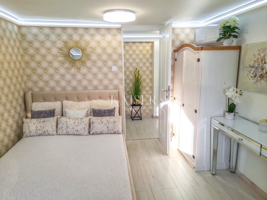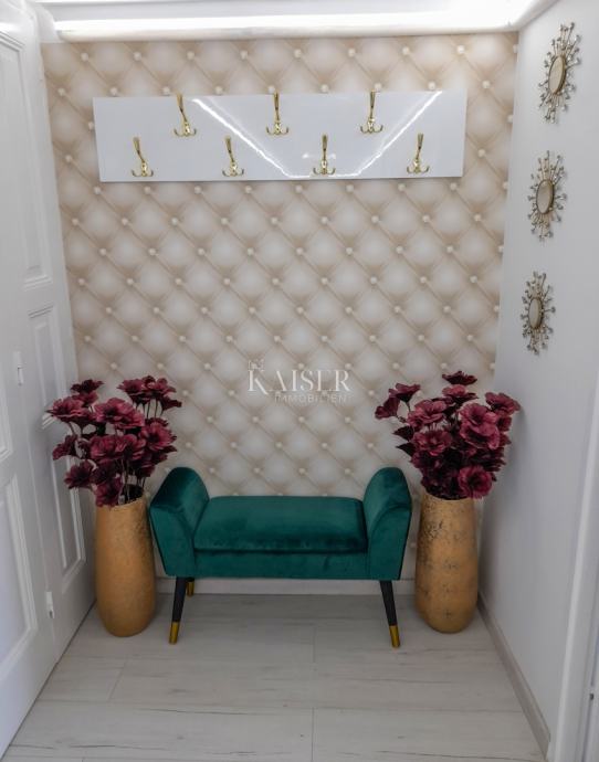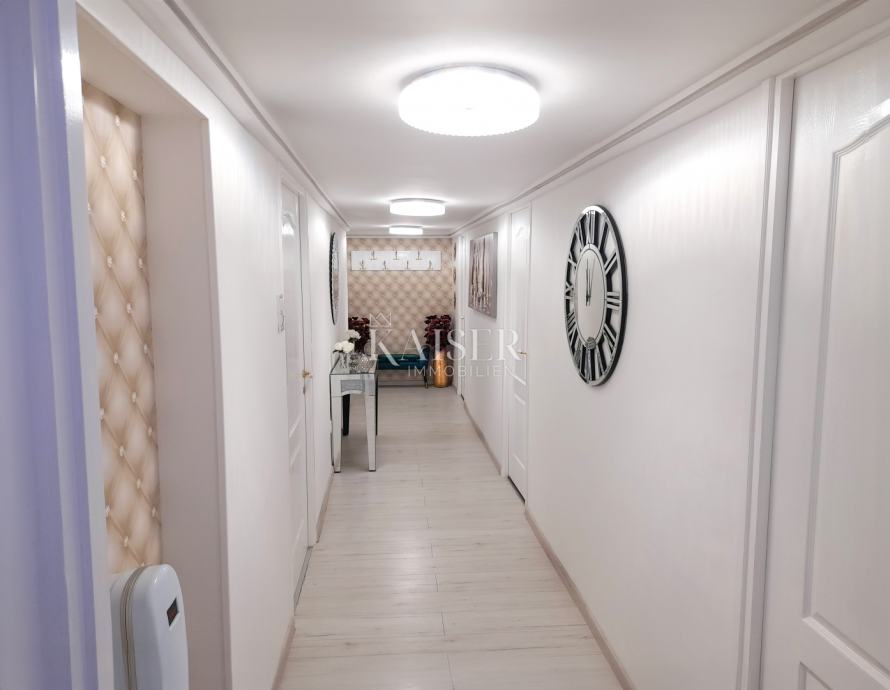 V samem središču Opatije, blizu srca in roba Opatije, približno 40 korakov od morja in plaž v avstro-ogrski vili v tretjem nadstropju, Kaiser-immobilie ponuja 69 m2 veliko popolnoma na novo prenovljeno stanovanje. Z vstopom v hodnik stanovanja, ki prostor deli na južni in zahodni del, se v jugovzhodnem delu nahajajo tri spalnice, v zahodnem delu pa kopalnica s tušem in straniščem ter kuhinja z jedilnico. Strešna okna zagotavljajo veliko naravne svetlobe v prostoru. Ker gre za staro avstro-ogrsko stavbo, debelina sten ščiti prostor pred ekstremno vročino poleti, pozimi pa pred vetrom in mrazom. V vsaki sobi stanovanja je tudi klimatska naprava, ki hitro doseže želeno temperaturo tako pozimi kot poleti. Eleganca stanovanja je dosežena s pridihom angleškega šarma, zmernostjo in udobjem chesterfieldskega sloga, pa tudi s kakovostnim pohištvom in kakovostnimi aparati Bosch v gospodinjstvu. Stanovanje se ponuja popolnoma opremljeno. V bližini lokacije se nahajajo vse ugodnosti, potrebne za življenje, od tržnice, lekarne, klinike, kioska s časopisi, mestne avtobusne postaje, trgovin, kavarn, restavracij in še več. Čeprav je stanovanje v središču mesta, je njegova južna orientacija in stara avstro-ogrska gradnja z debelimi zidovi omogočila bivanje brez mestnega hrupa. Ena od prednosti je tudi dostop do plaže, ki je oddaljena tri minute hoje. Do bližnjega mesta Lovran je približno 15 minut vožnje z avtomobilom, do majhne ribiške vasice Volosko približno 15 minut lahkega sprehoda po promenadi Lungo mare približno 15 minut, do vrha Učke približno 20 minut vožnje z avtomobilom, do smučišča Platak približno 30 minut vožnje z avtomobilom. Druga večja mesta so: Dunaj 5 ur vožnje z avtomobilom, Trst 1 ura, Ljubljana 1 ura-30 minut, Zagreb 1 ura-30 minut, letališče Pula 1 ura-20 minut, letališče Krk 40 minut, Berlin 10 ur. Za dodatne informacije in ogled se obrnite na svojega agenta: Eli Lovko, mob: 0916133776; eli@kaiser-immobilien.hr Agencijska provizija znaša 3 % + DDV
