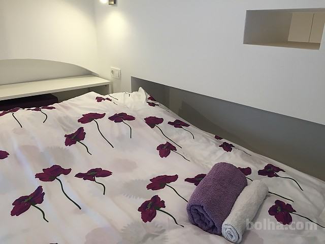 Ljubljana, the very city centre, Slovenska 1, next to Faculty of Arts, other faculties and main sights, studio for 2 persons or a couple, ground floor facing the courtyard with little park, 25 m2, completely renovated, newly furnished, modern design; very bright with big glass doors; newly kitchen (with refrigerator, freezer, cooking stove,oven, washing machine), dinning part with kitchen table and chairs, separated sleeping part 160 cm high (with 2 mattresses of high quality 80x200, small wardrobes and a window) accessible with stairs; separated bathroom (new shower, toilet, washbasin, hairdryer), internet, central heating, awailable from Jan. 7th, 2026. Rent 450 eur/month + 215 eur costs (all costs included), so 710 eur monthly or 355 eur per person monthly, 2-months deposit. Please write to enja.doo@siol.net.