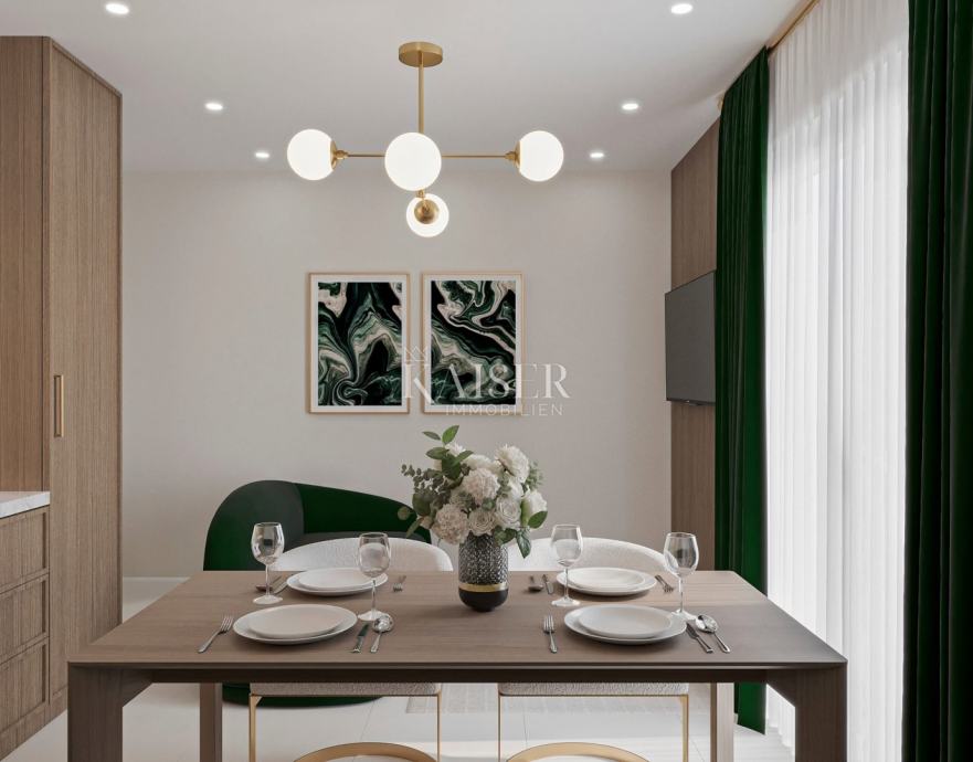 Na izjemni lokaciji v mestu Pag, le 70 metrov od čudovite peščene plaže in nekaj minut hoje od zgodovinskega središča in mestne promenade, se prodaja dvosobno stanovanje, idealno za počitnice, pa tudi za celoletno bivanje. Stanovanje se nahaja v mirnem delu mesta in ponuja popolno ravnovesje med zasebnostjo in bližino vseh ugodnosti. Pag je znan po stoletni tradiciji čipkarstva, čistem morju, bogati gastronomski ponudbi (slavni paški sir in jagnjetina), pa tudi po vse večji priljubljenosti kot destinacija za počitnice in družinsko življenje. Stanovanje je sestavljeno iz dveh prostornih spalnic, kopalnice, stranišča za goste, kuhinje z jedilnico in dnevne sobe, ki se odpira na velik balkon z odprtim pogledom na morje - idealno za uživanje v sončnih zahodih in mediteranskem vzdušju. Stavba je v gradnji, zaključek del pa je predviden za konec leta 2025. V ponudbi je skupno 8 stanovanj, 3 dvosobna in 5 enosobnih. Osnovni podatki: Površina: 65 m2 Število sob: 2 Nadstropje: 2 Oddaljenost od morja: 70 m Vrsta plaže: peščena Velik balkon s pogledom na morje Primerno za turistični najem ali družinsko življenje Mesto Pag ponuja vse, kar potrebujete za udobno življenje in sproščujoč oddih: restavracije, trgovine, kulturno dediščino, obmorske promenade in čisto Jadransko morje. Apartma se nahaja na privlačni in iskani lokaciji, zaradi česar je odlična naložba. Provizija agencije za kupca znaša 3% + DDV in se plača v primeru nakupa nepremičnine, ob sklenitvi prvega pravnega dejanja. Za več informacij in za dogovor o ogledu nas kontaktirajte z zaupanjem. Tel: +385915404646 E-pošta: vedran@kaiser-immobilien.hr