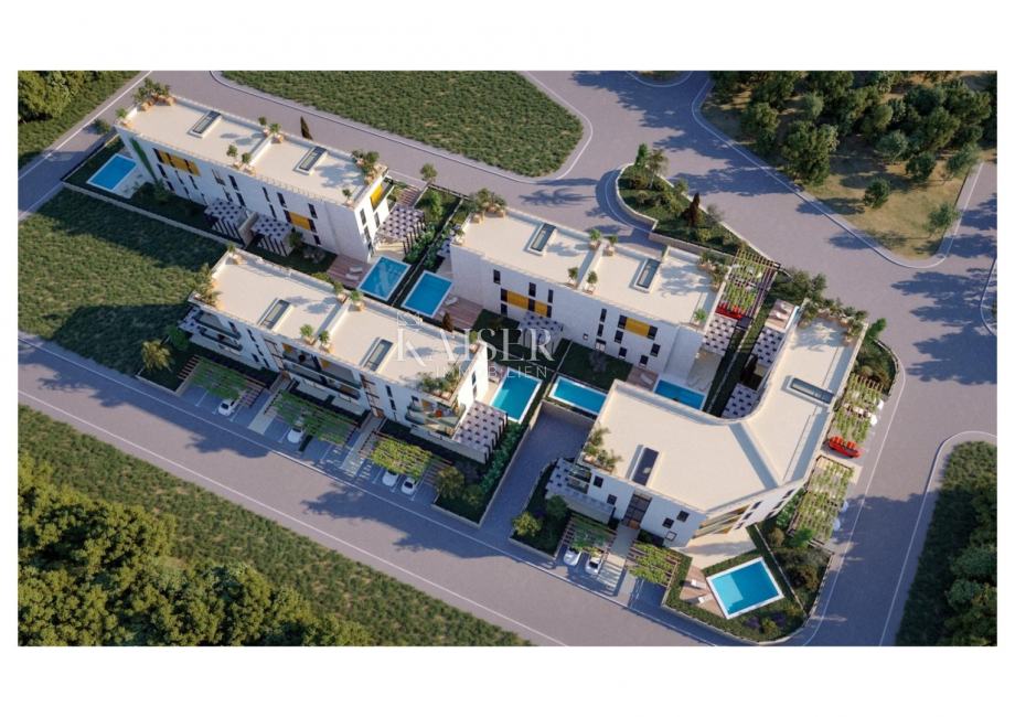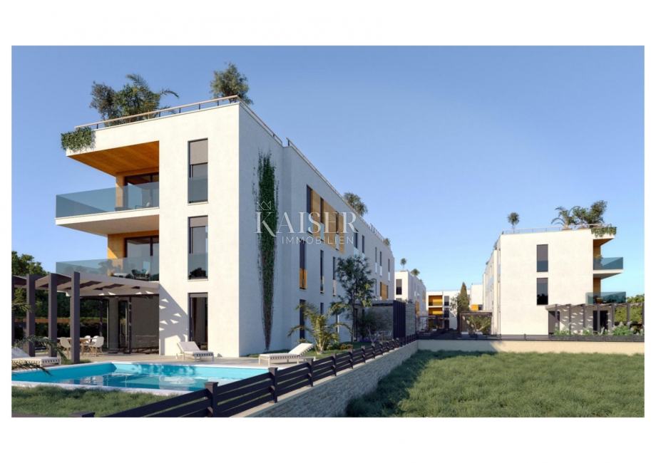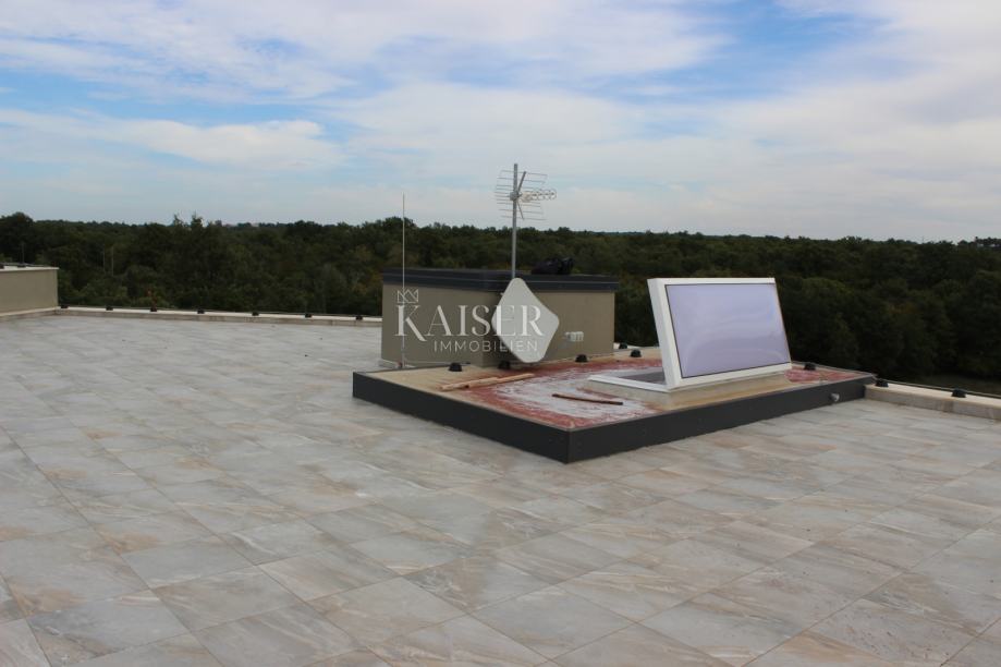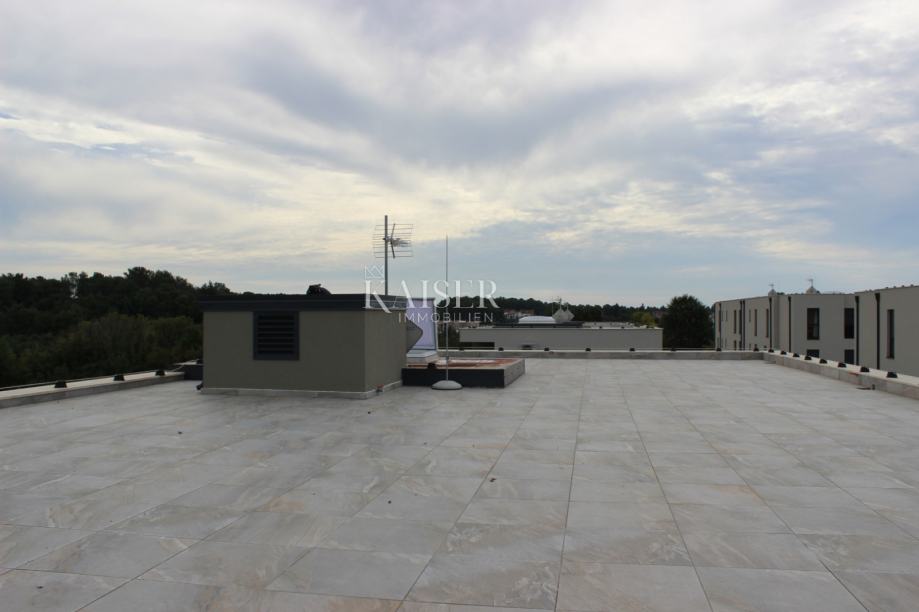 Poreč stanovanje 177m2 penthouse Prostorno stanovanje 132m2 v novogradnji na mirni lokaciji. Stanovanje obsega: 4 sobe, od katerih ima ena lastno kopalnico in ložo, ločen prostor za pralnico, drugo kopalnico in veliko dnevno sobo povezano s kuhinjo z izhodom na teraso. V sklopu nepremičnine je tudi zasebna strešna terasa velikosti 132 m2 z jacuzzijem in prostorom za uživanje. Objekt ima skupno 4 stanovanja, lastno parkirno mesto v garaži, ki se nahaja v pritličju objekta in še eno zunanje parkirno mesto. Stavba ima dvigalo! Stanovanje ima talno gretje, ima pa tudi klimo.