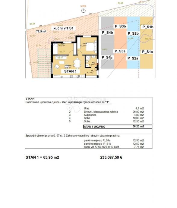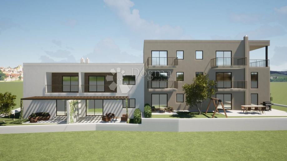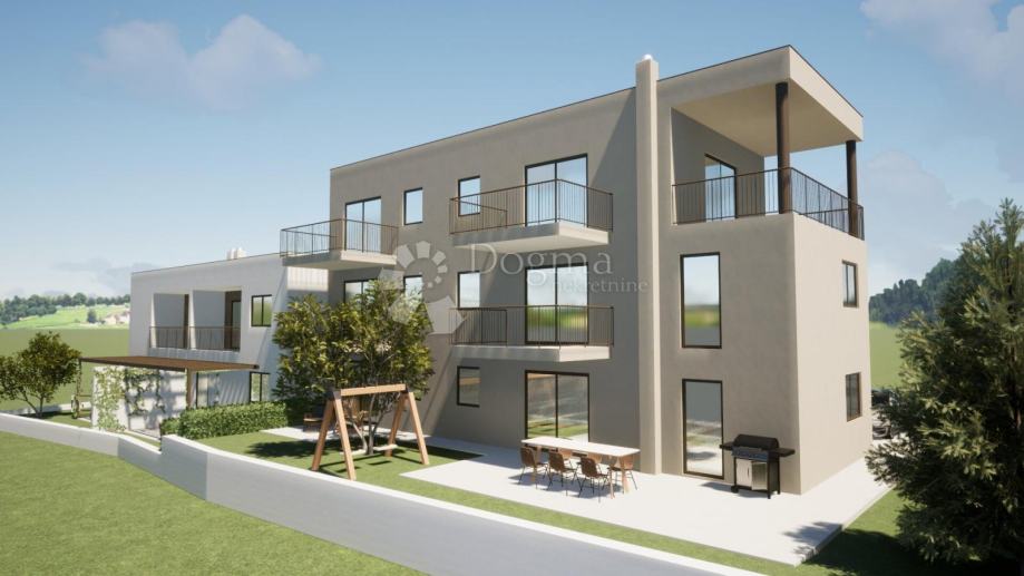 POREČ (okolica) Stanovanje v novi stavbi, 3 km od morja se nahaja na zahodni obali istrskega polotoka. V rimskih časih je Poreč dobil svoje prvo obzidje, celotno mesto je bilo obzidano razen zahodne strani, to je konice polotoka, kjer je bil Neptunov ali Jupitrov tempelj. Zaradi svoje izredne geografske lege ter naravnih in kulturnih lepot je danes eno najmočnejših turističnih središč na Hrvaškem. Glavna gospodarska panoga je turizem, s katerim so v pozitivni korelaciji trgovina, gradbeništvo in kmetijstvo. Prodamo stanovanje v gradnji le nekaj minut vožnje od Poreča in 3 km od čudovitih plaž. Stanovanje se nahaja v pritličju in meri 58,20m2. Sestoji iz predsobe, kuhinje z jedilnico, kopalnice, dnevne sobe z izhodom na teraso in dveh spalnic. Stanovanje je ogrevano s talnim električnim gretjem, ogrevanje in hlajenje pa s klimatsko napravo. Stanovanju pripadata 2 parkirni mesti. Stanovanje ima cca 77,5 m2 urejenega vrta, kupec pa ne plača davka na promet nepremičnin. Zaradi svoje lokacije in bližine vseh objektov, kot so supermarketi, šola, vrtec, restavracije, je idealno stanovanje za družinsko življenje, pa tudi za najem v turistične namene. Za vsa vprašanja in ogled se obrnite na: Marija Šantor GSM: +385922827379 EMAIL: marija.santor@dogma-nekretnine.com